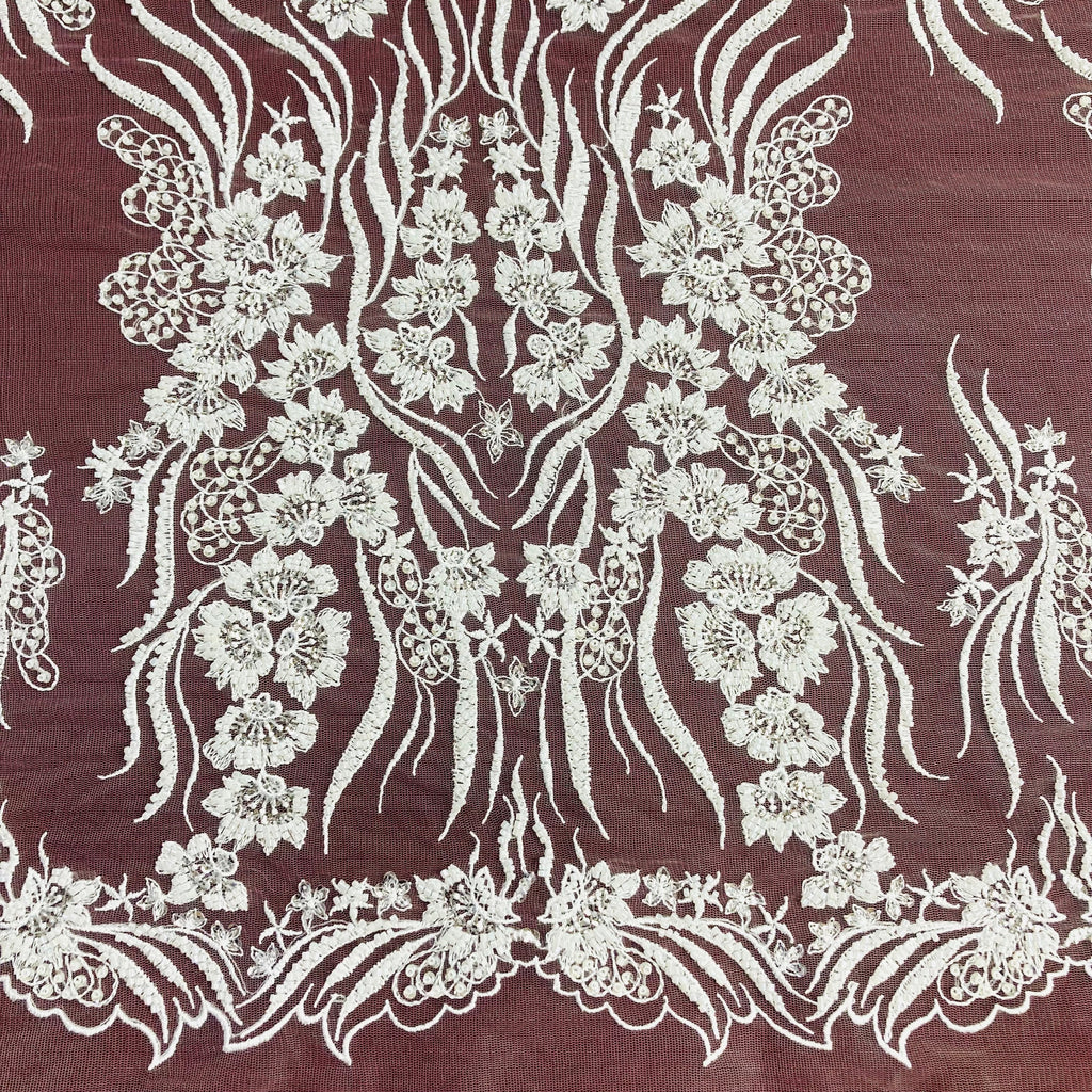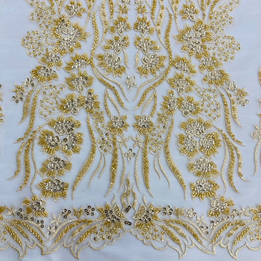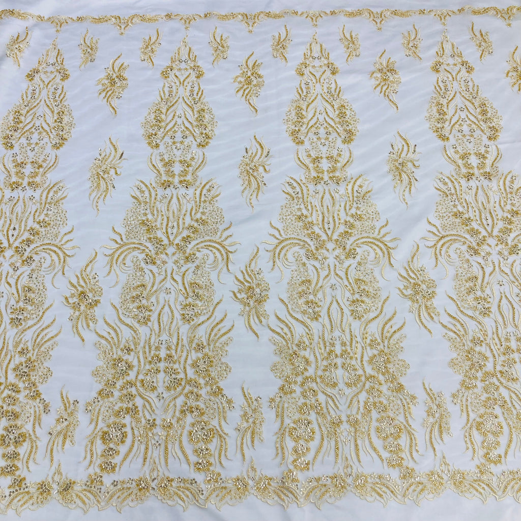 Beaded Lace Fabric Embroidered on 100% Polyester Net Mesh | Lace USA - GD-13276