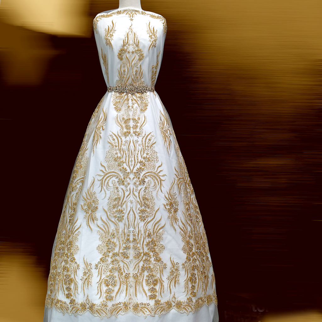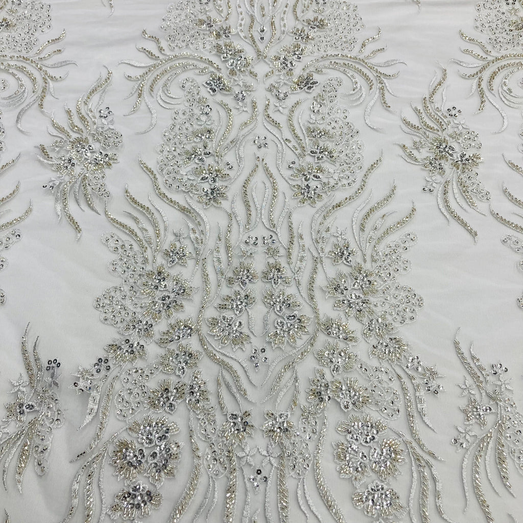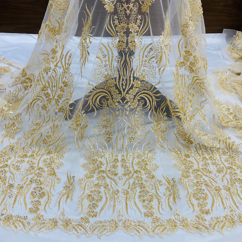 Beaded Lace Fabric Embroidered on 100% Polyester Net Mesh | Lace USA - GD-13276