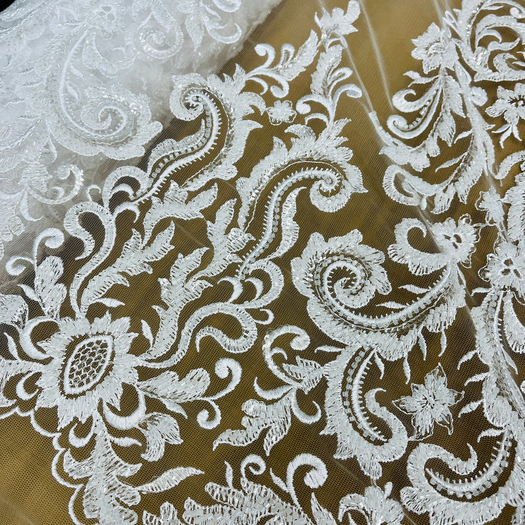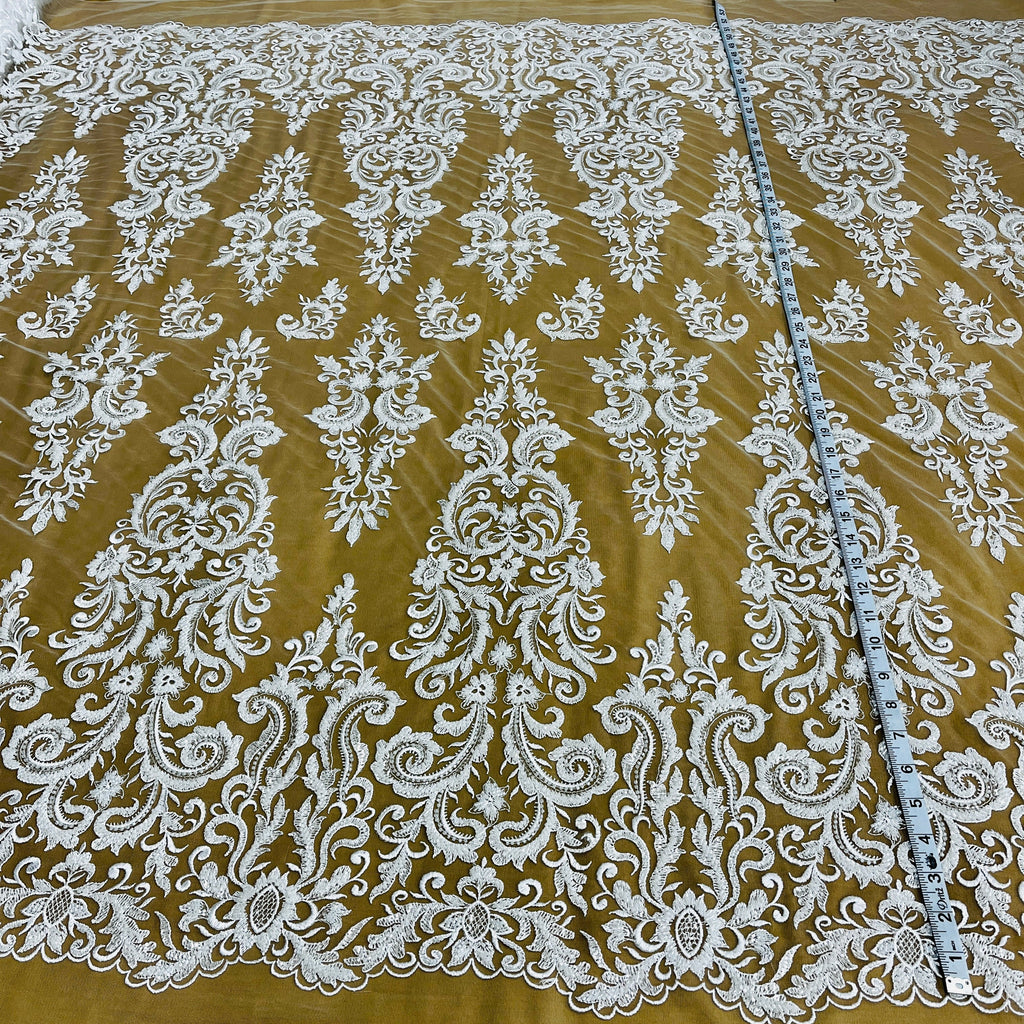 Beaded Lace Fabric Embroidered on 100% Polyester Net Mesh | Lace USA - GD-13294