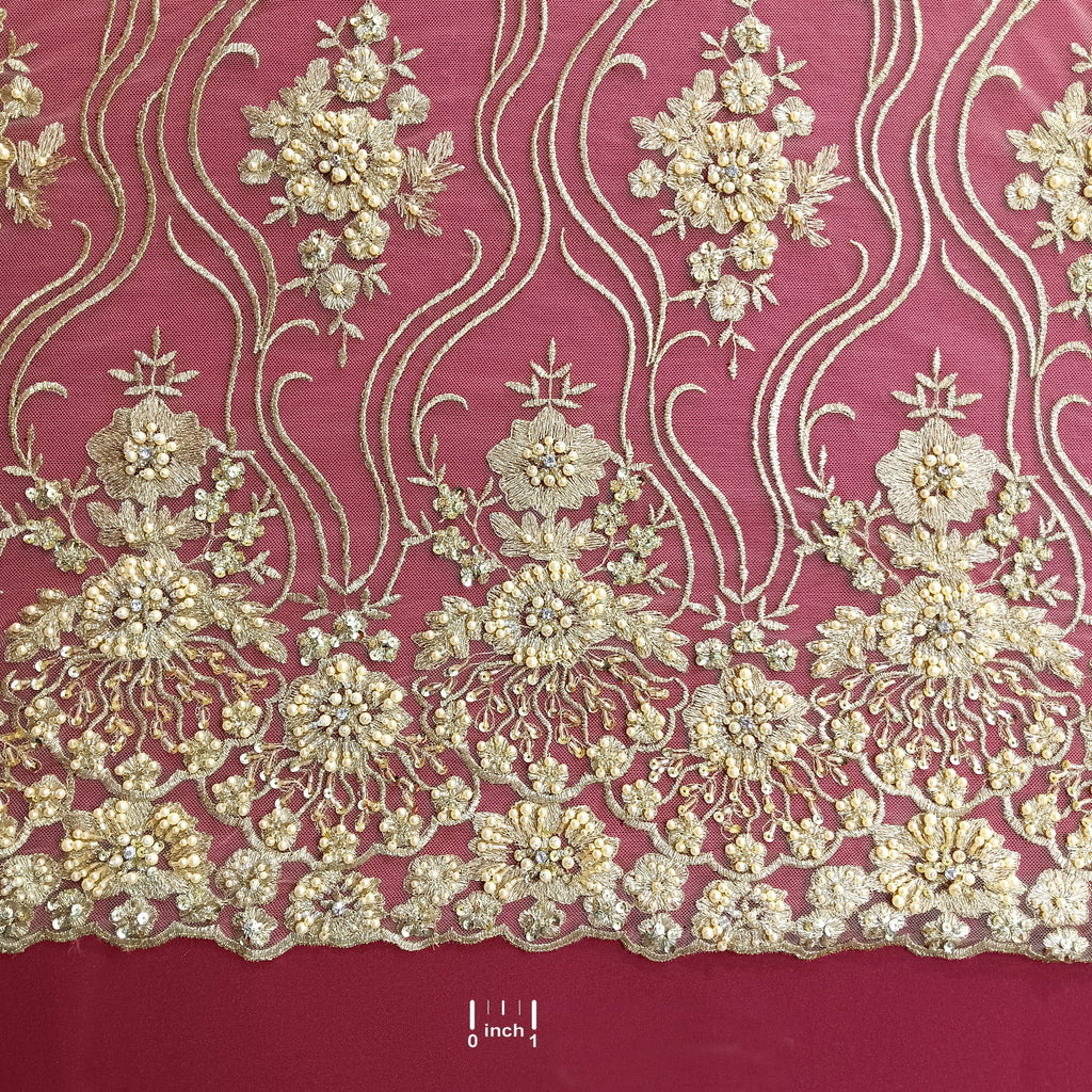 Beaded Lace Fabric Embroidered on 100% Polyester Net Mesh | Lace USA - GD-18615