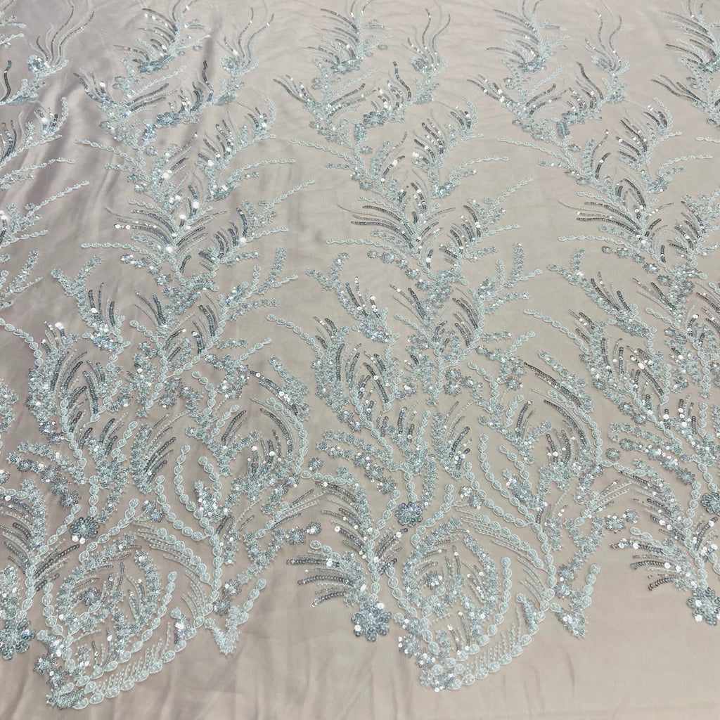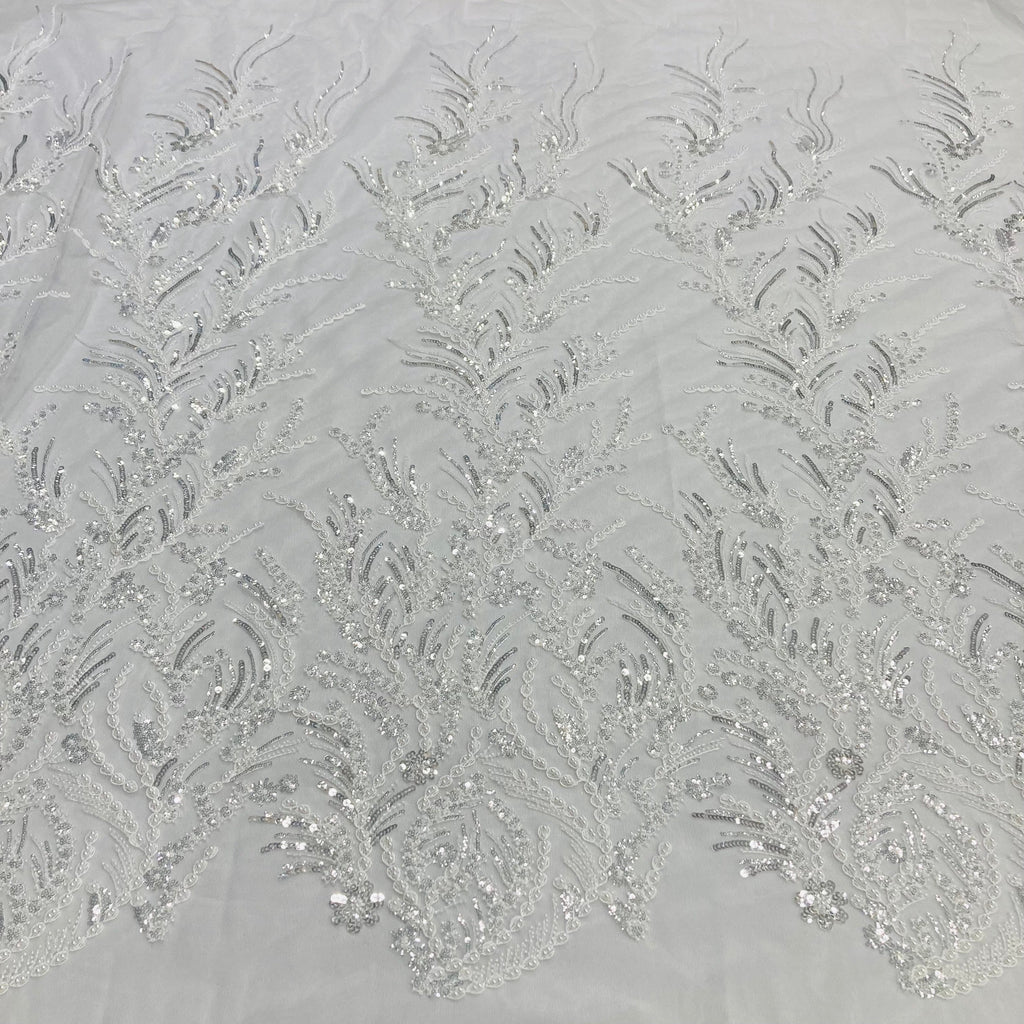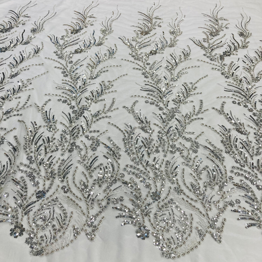 Beaded Lace Fabric Embroidered on 100% Polyester Net Mesh | Lace USA - GD-210904