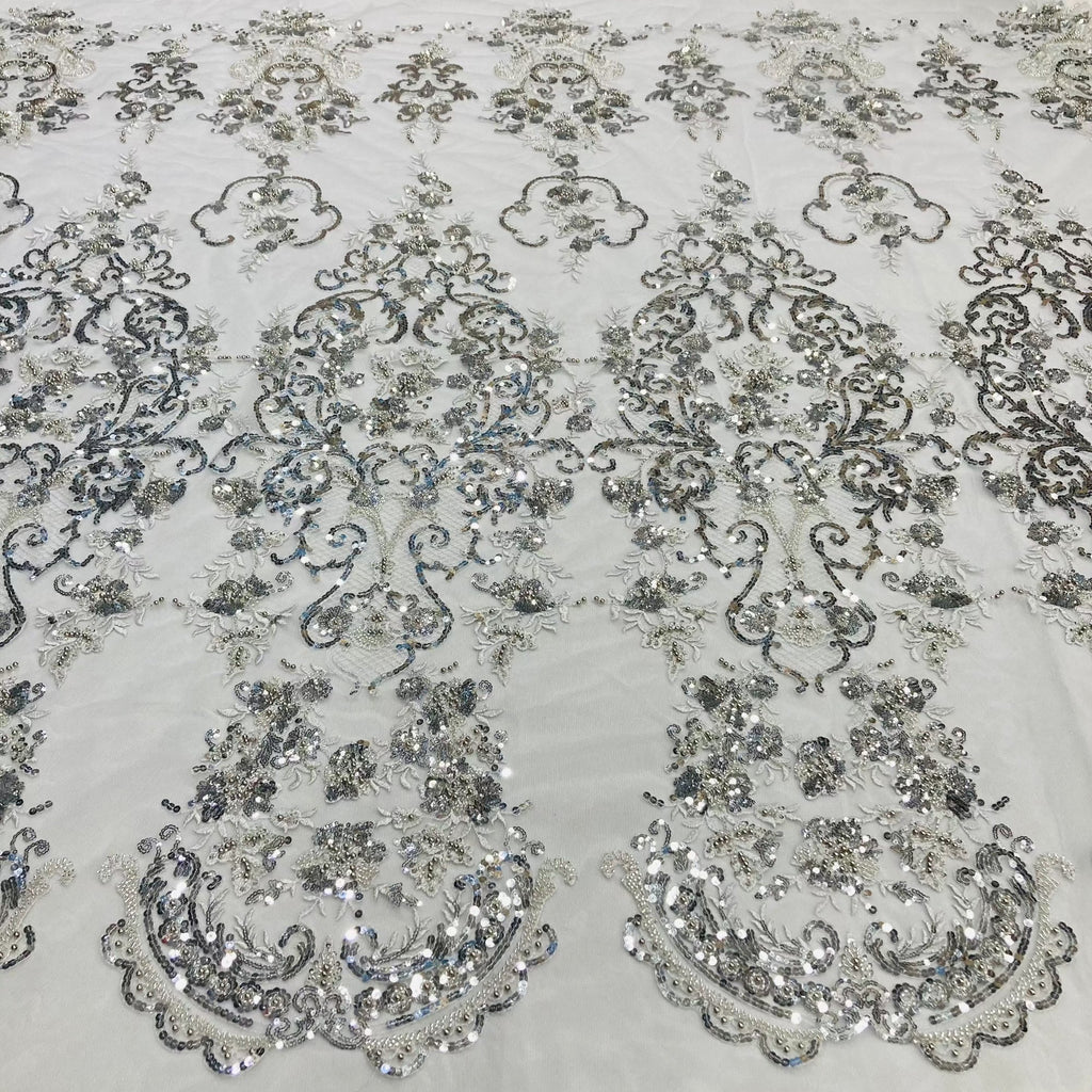 Beaded Lace Fabric Embroidered on 100% Polyester Net Mesh Lace USA - GD-210907