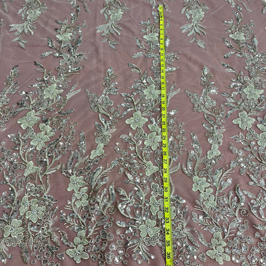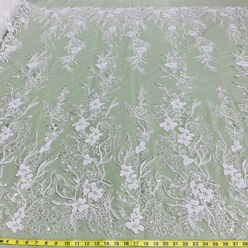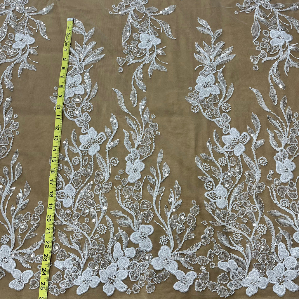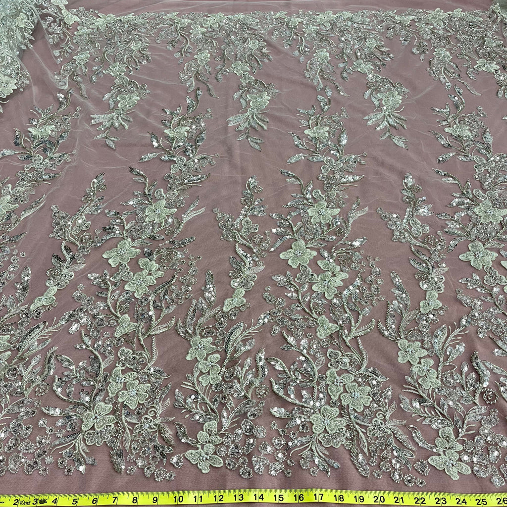 Beaded Lace Fabric Embroidered on 100% Polyester Net Mesh | Lace USA - GD-220703
