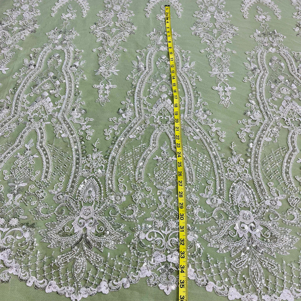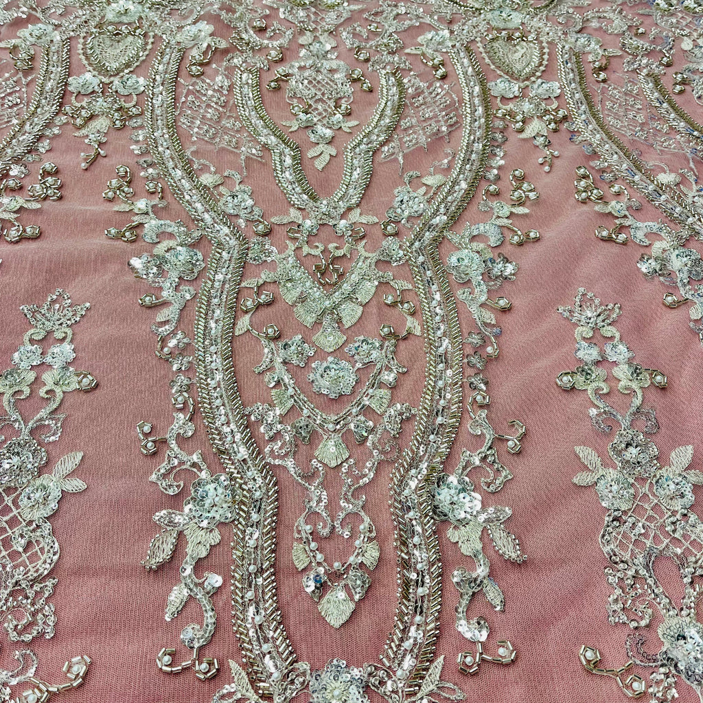 Beaded Lace Fabric Embroidered on 100% Polyester Net Mesh | Lace USA - GD-227239