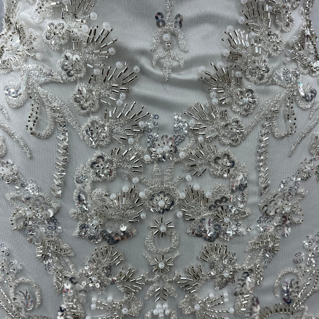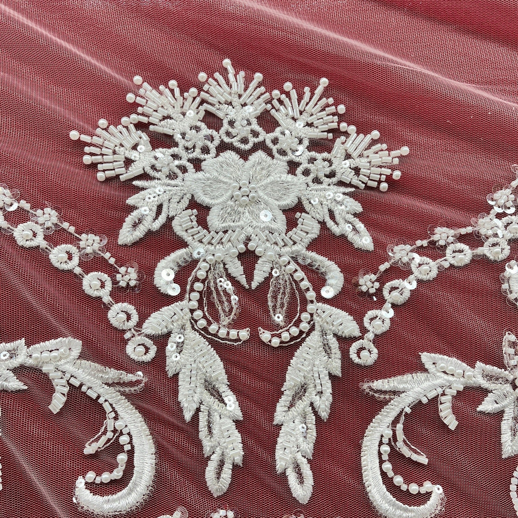 Beaded Lace Fabric Embroidered on 100% Polyester Net Mesh | Lace USA - GD-237341