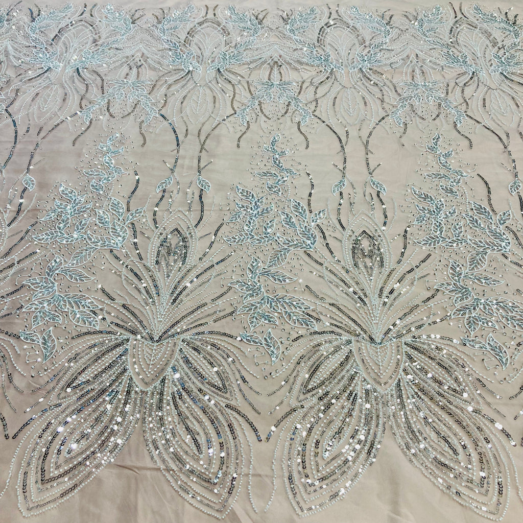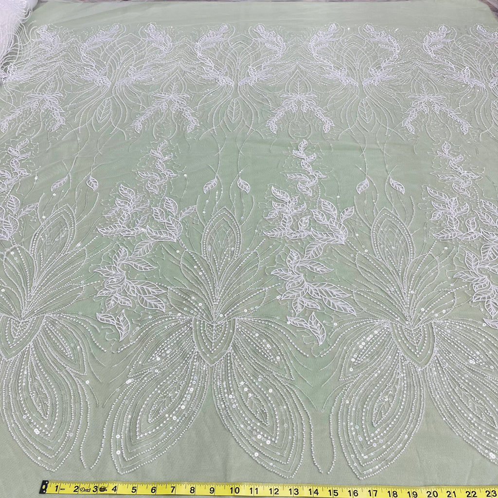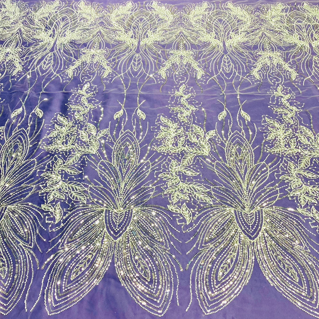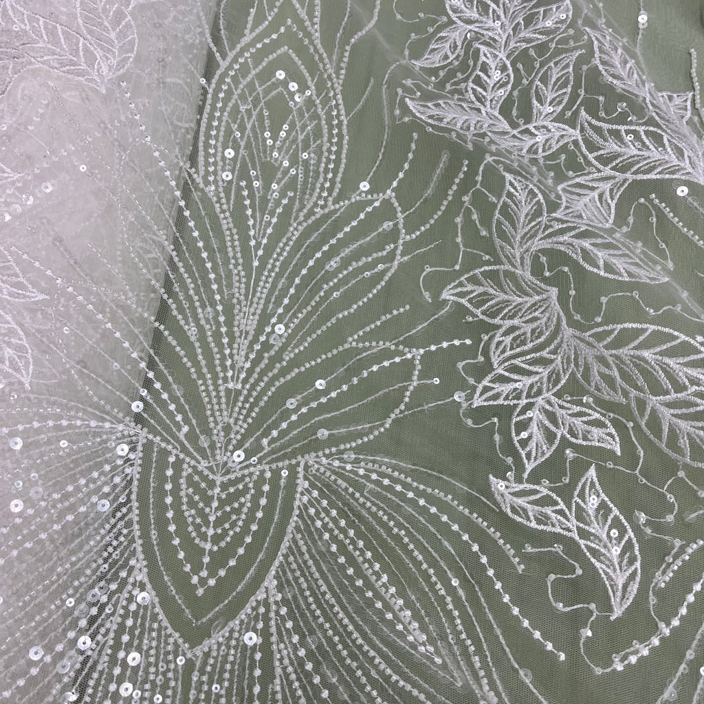 Beaded Lace Fabric Embroidered on 100% Polyester Net Mesh | Lace USA - GD-2918
