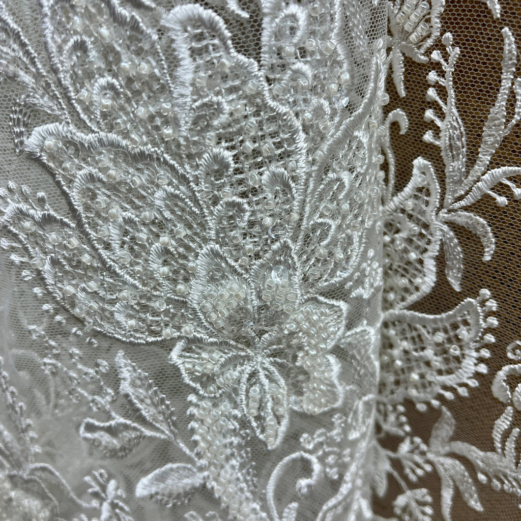 Beaded Lace Fabric Embroidered on 100% Polyester Net Mesh | Lace USA - GD-53627