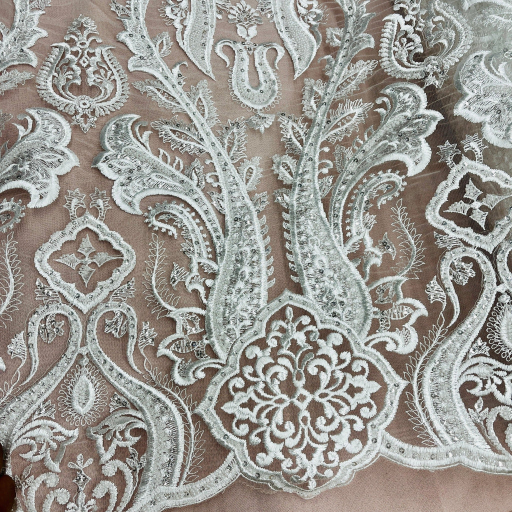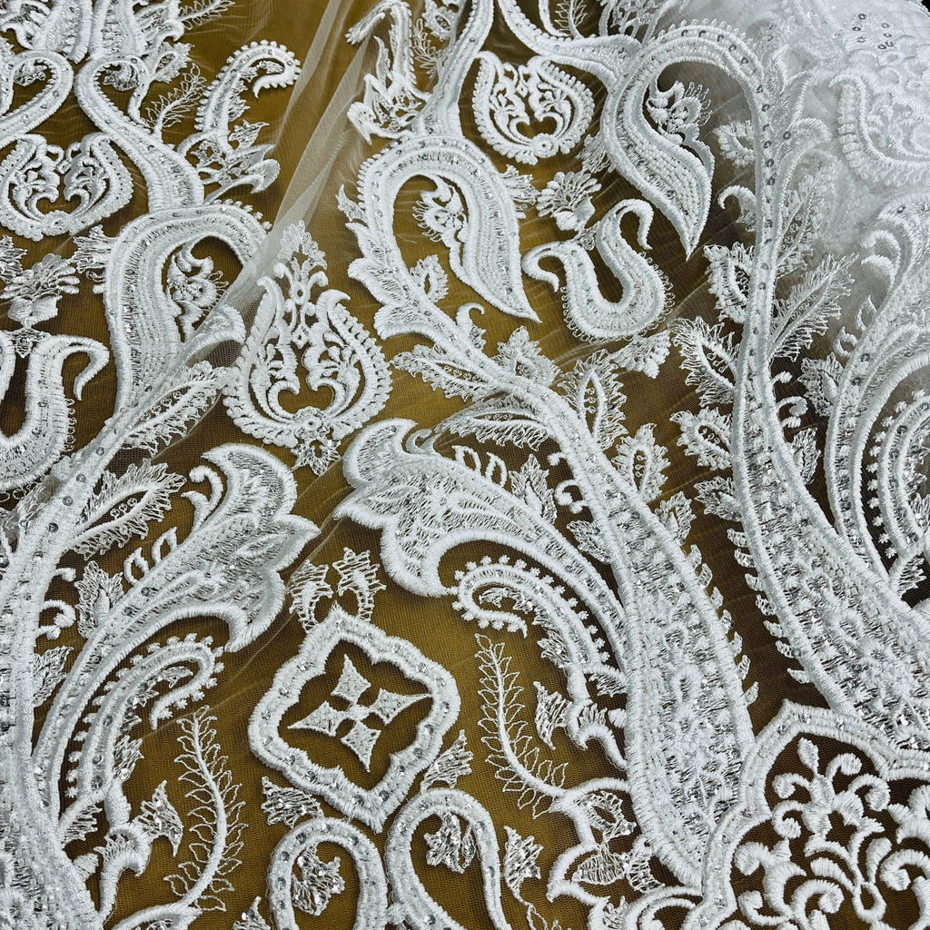 Beaded Lace Fabric Embroidered on 100% Polyester Net Mesh | Lace USA - GD-61416