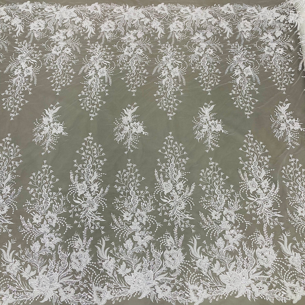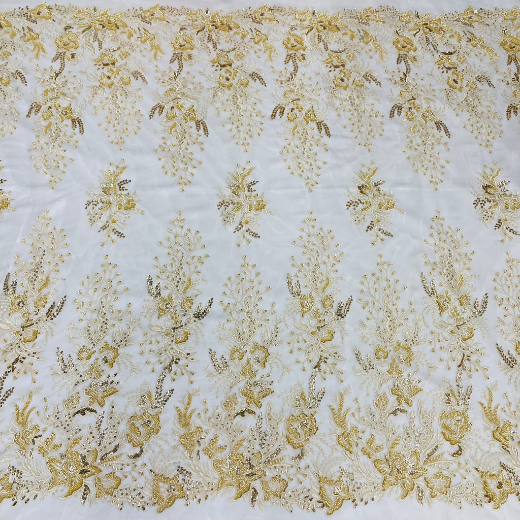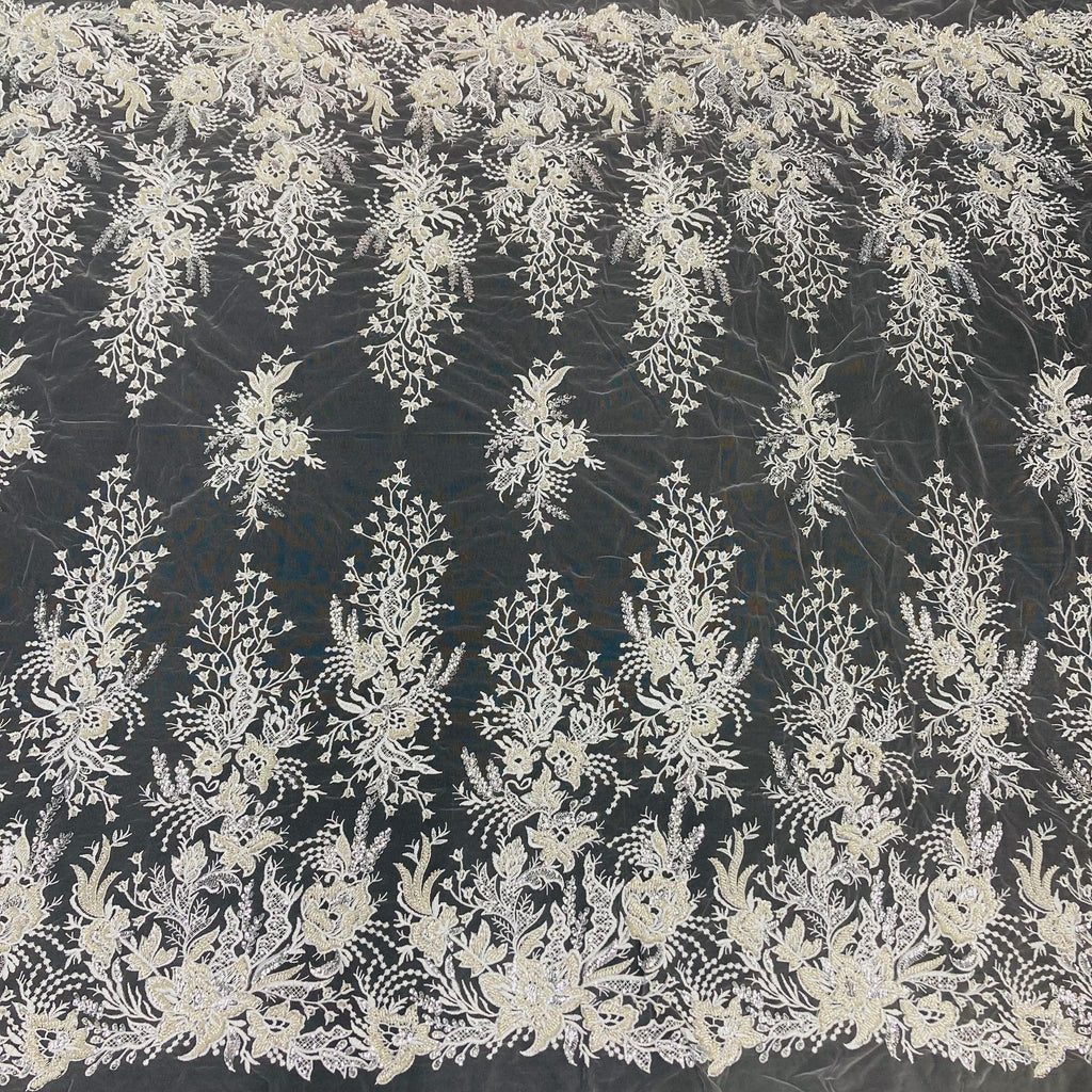 Beaded Lace Fabric Embroidered on 100% Polyester Net Mesh | Lace USA - GD-66919