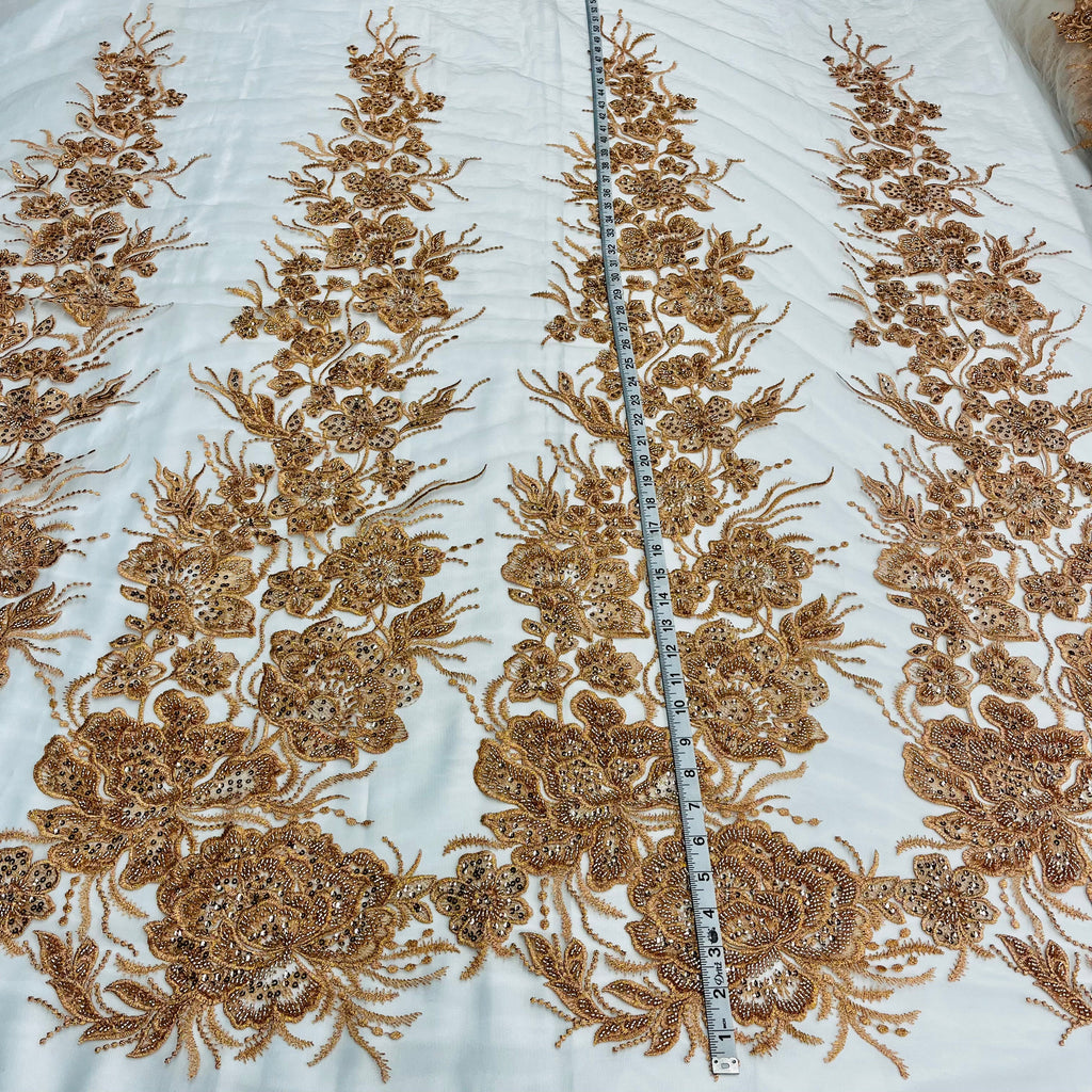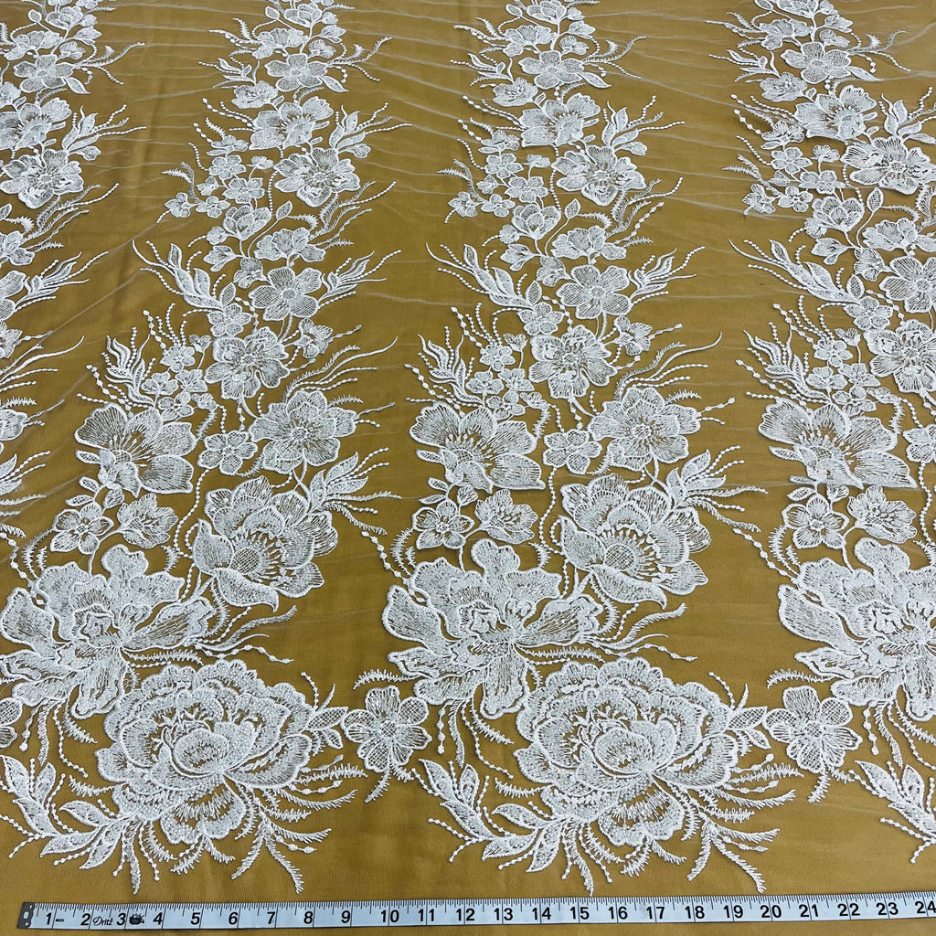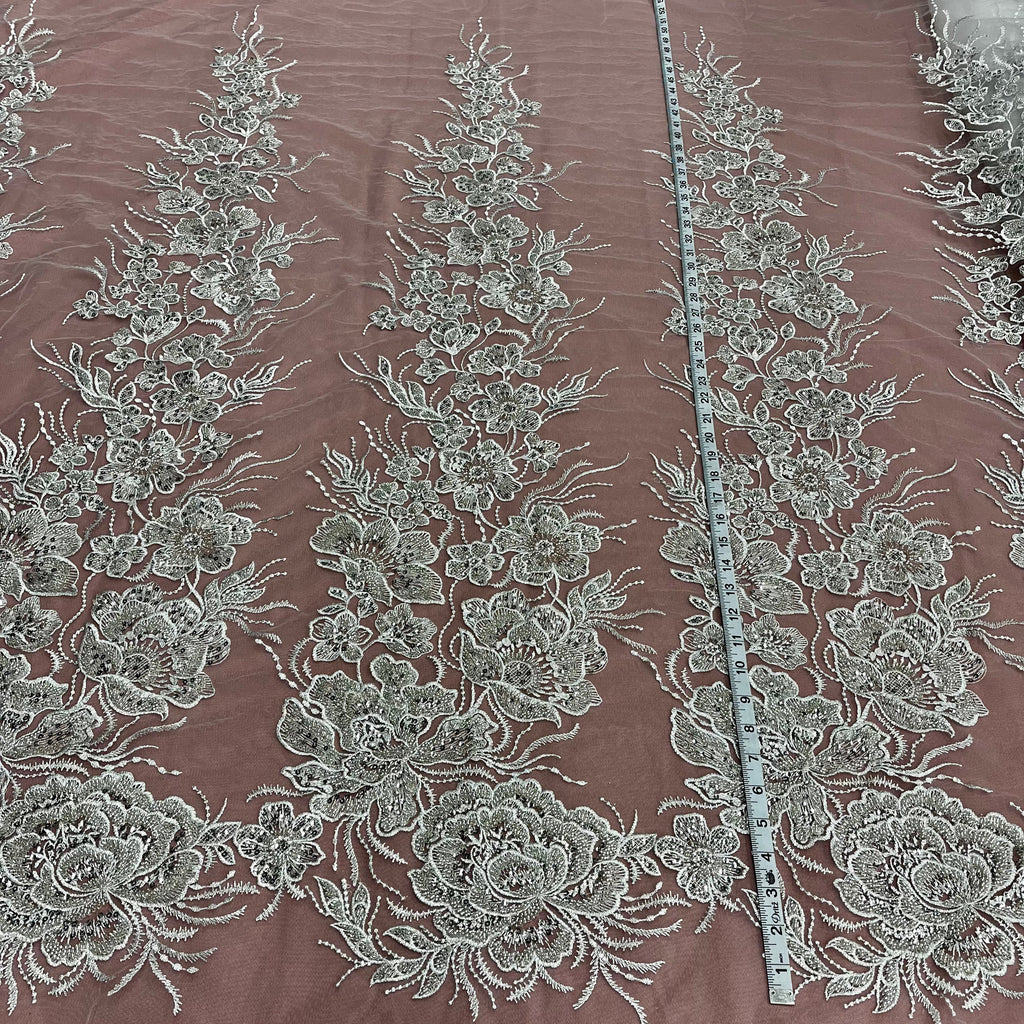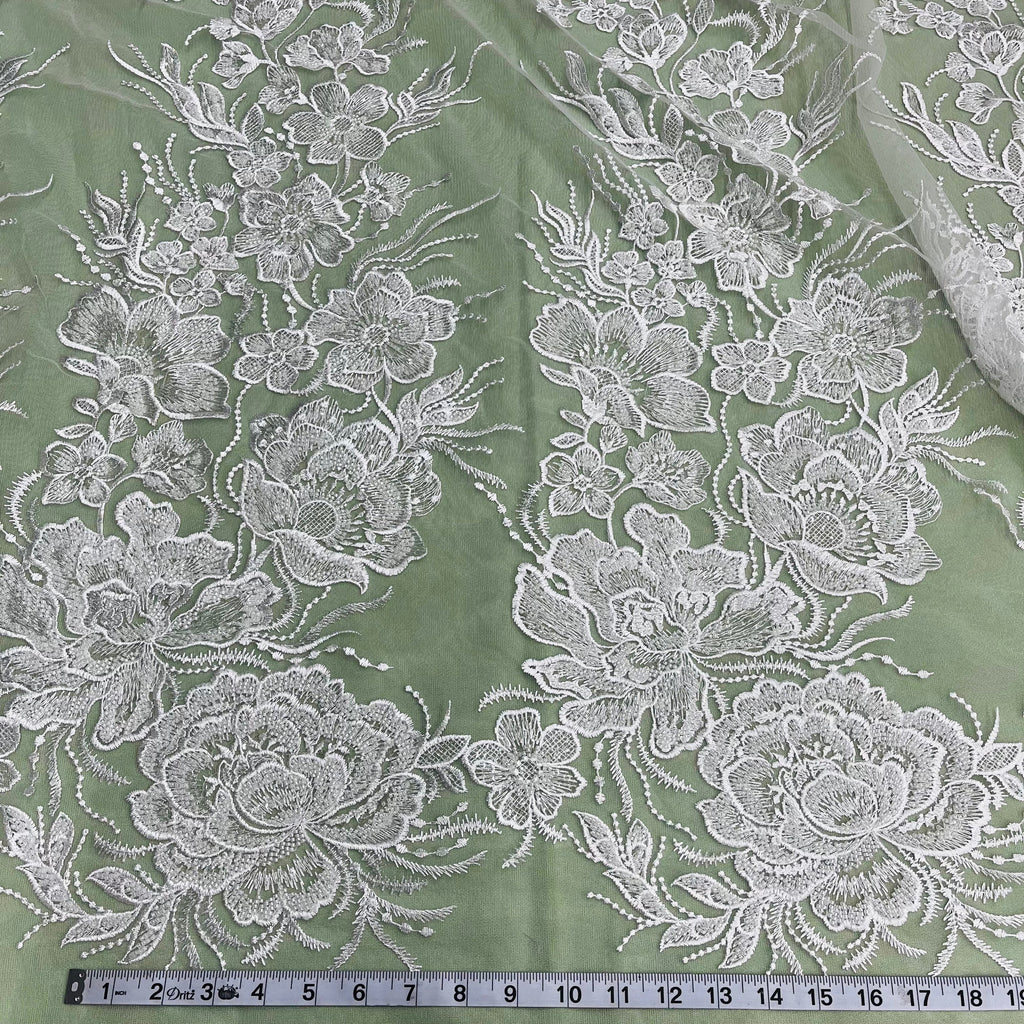 Beaded Lace Fabric Embroidered on 100% Polyester Net Mesh | Lace USA - GD-67313