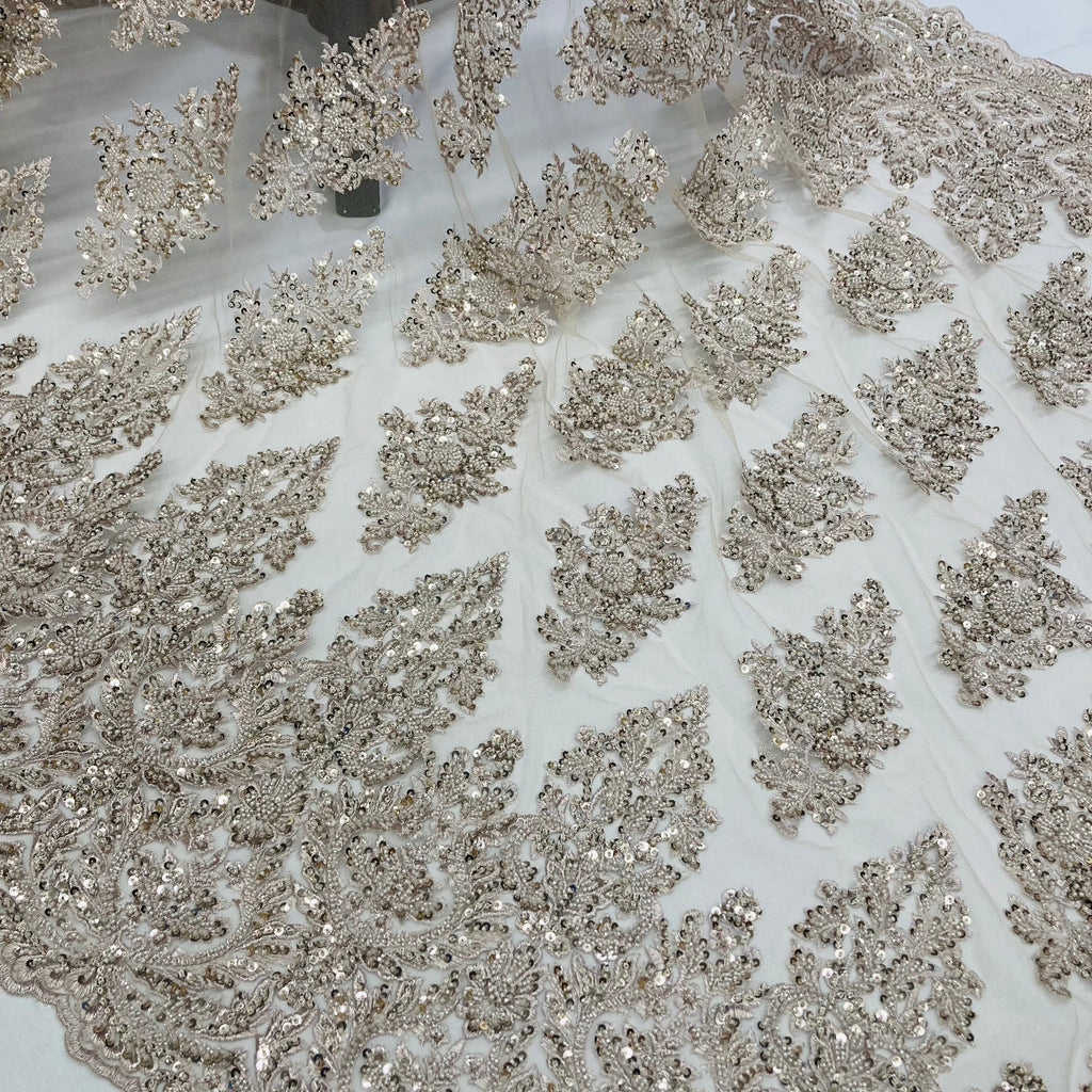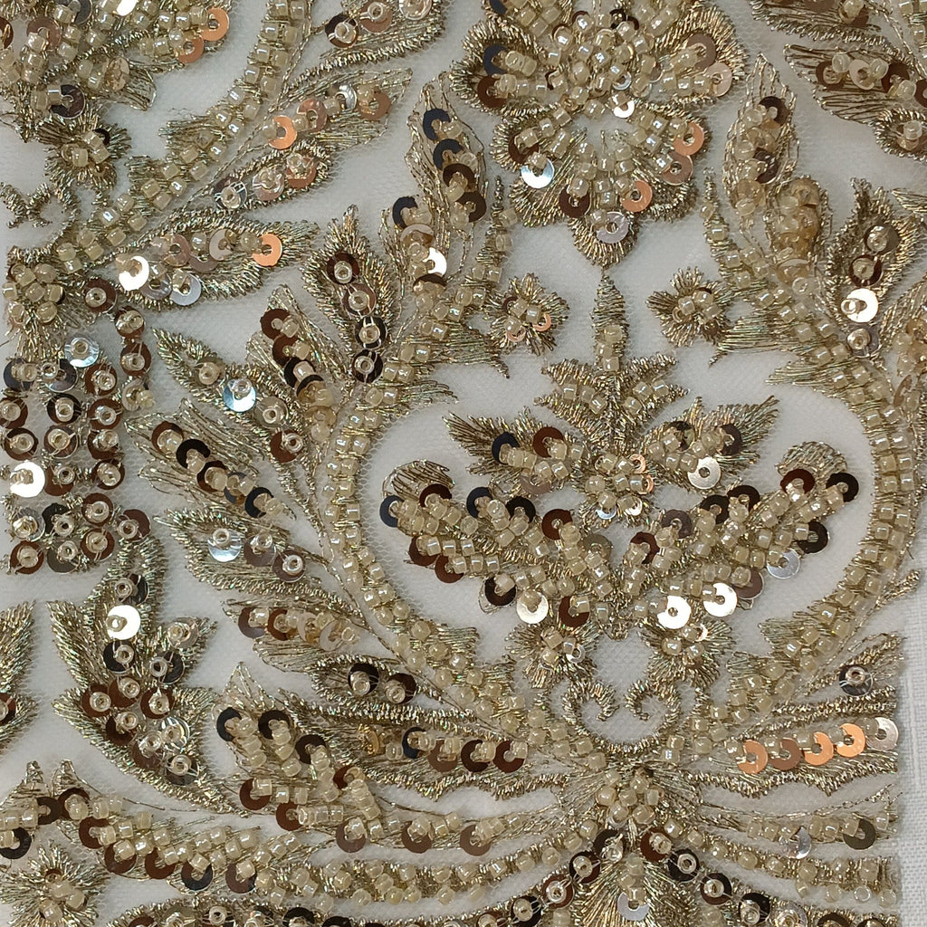 Beaded Lace Fabric Embroidered on 100% Polyester Net Mesh | Lace USA - GD-824