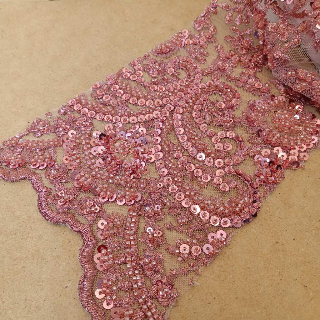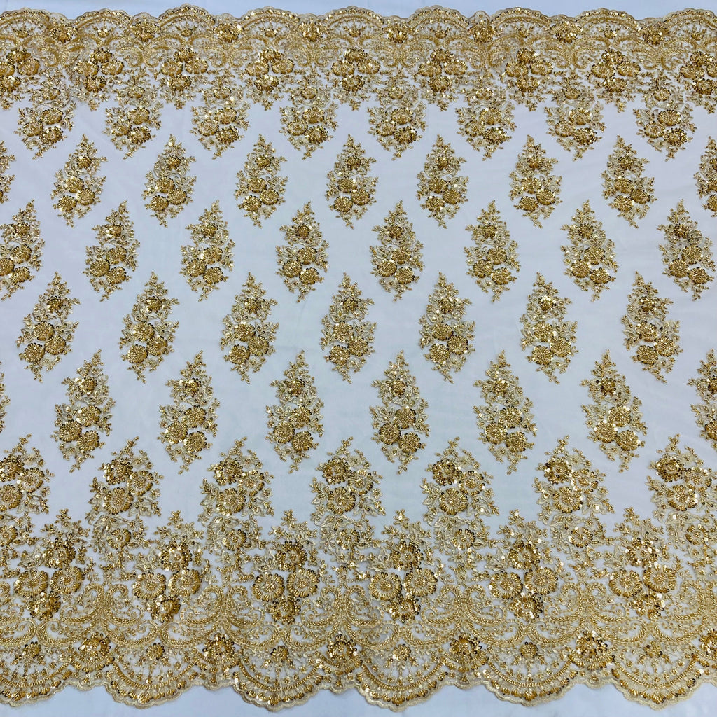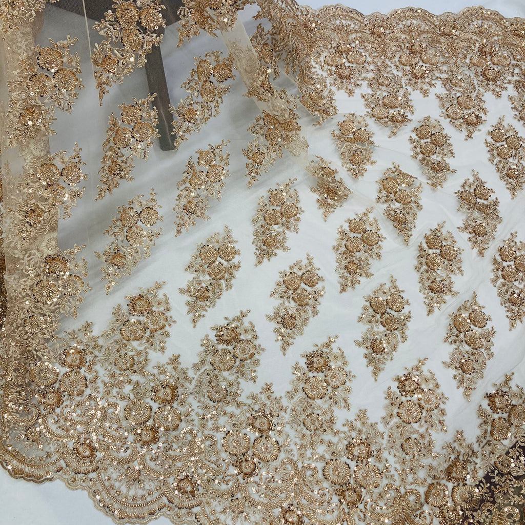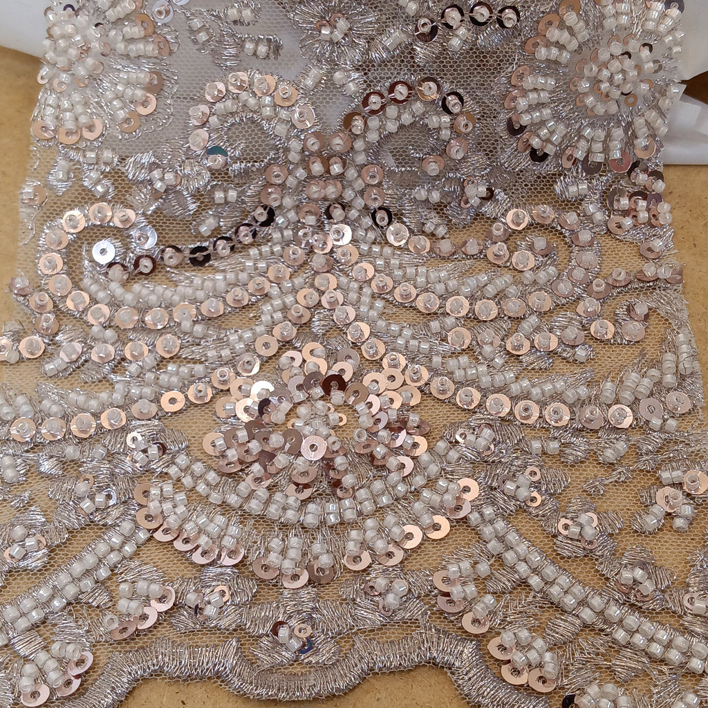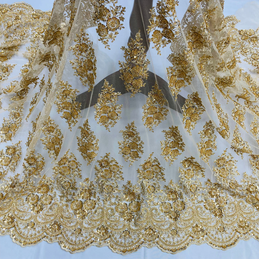 Beaded Lace Fabric Embroidered on 100% Polyester Net Mesh | Lace USA - GD-832