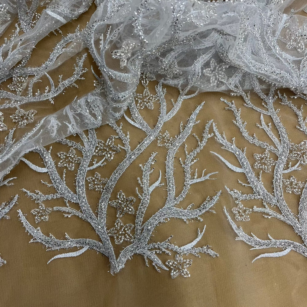 Beaded Lace Fabric Embroidered With Fuzzy Thread on 100% Polyester Net Mesh | Lace USA - GD-12263