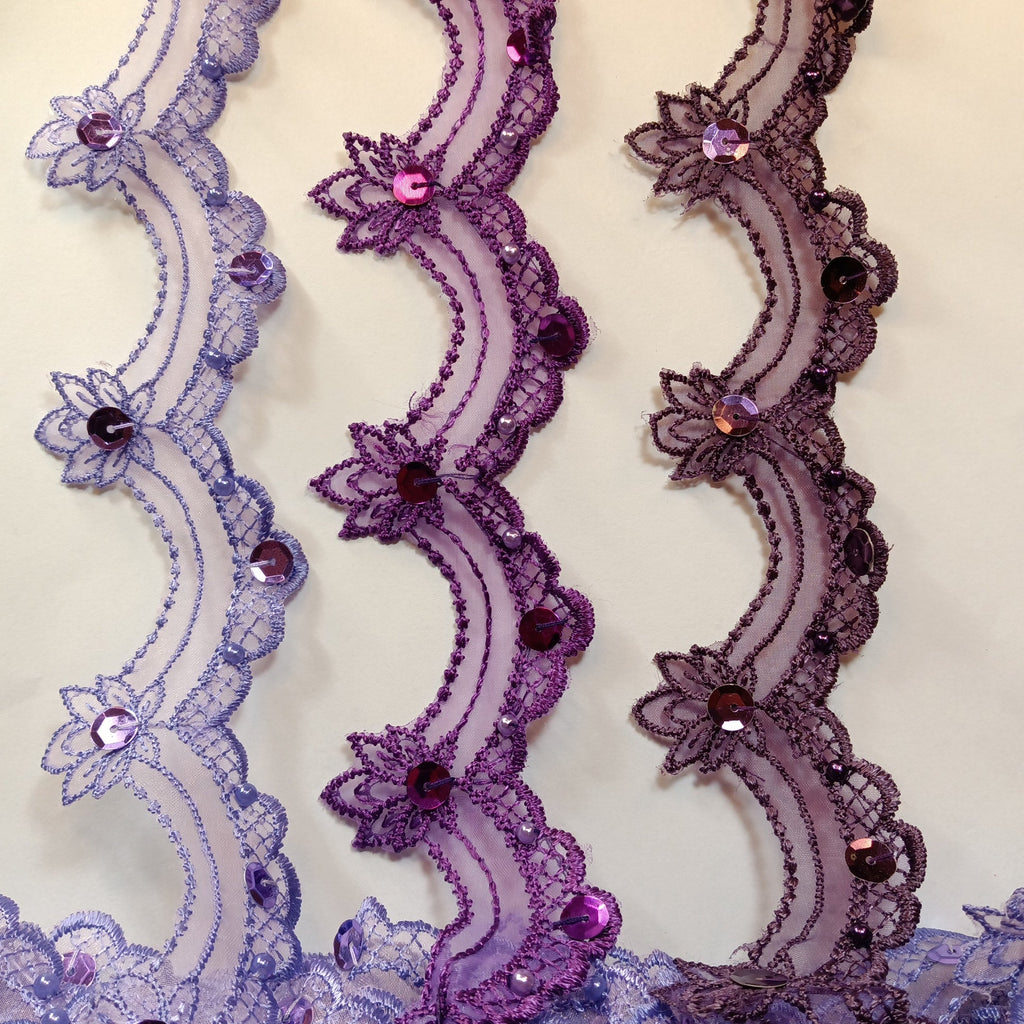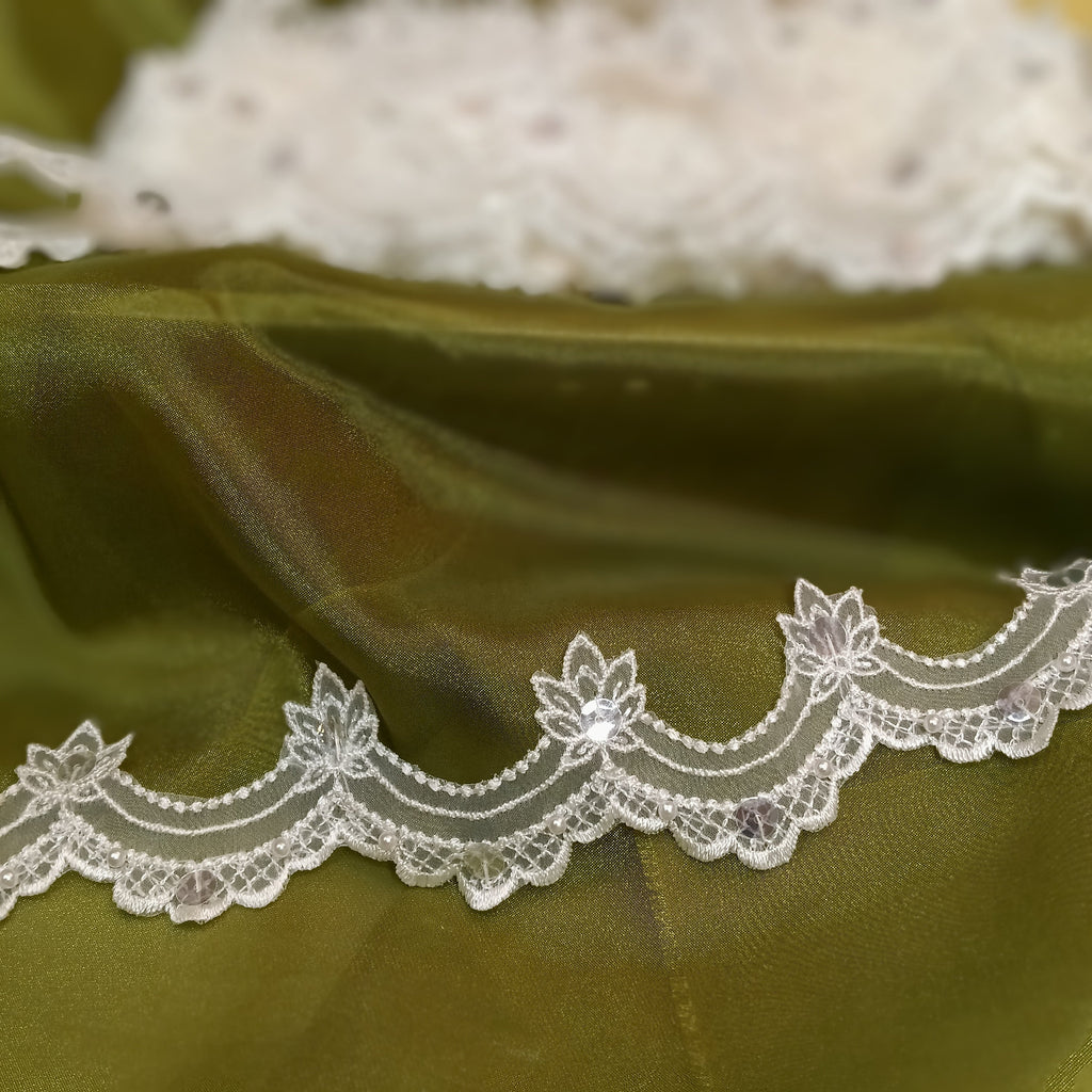 Beaded Lace Trimming Embroidered on 100% Polyester Organza | Lace USA - KZ-22