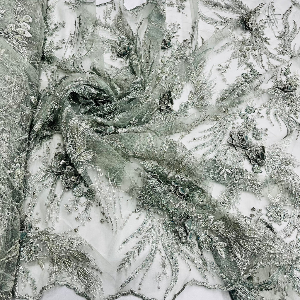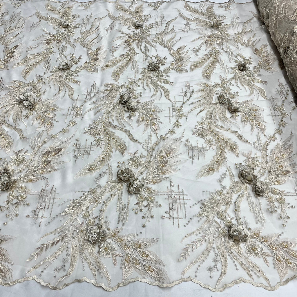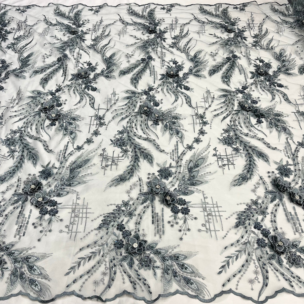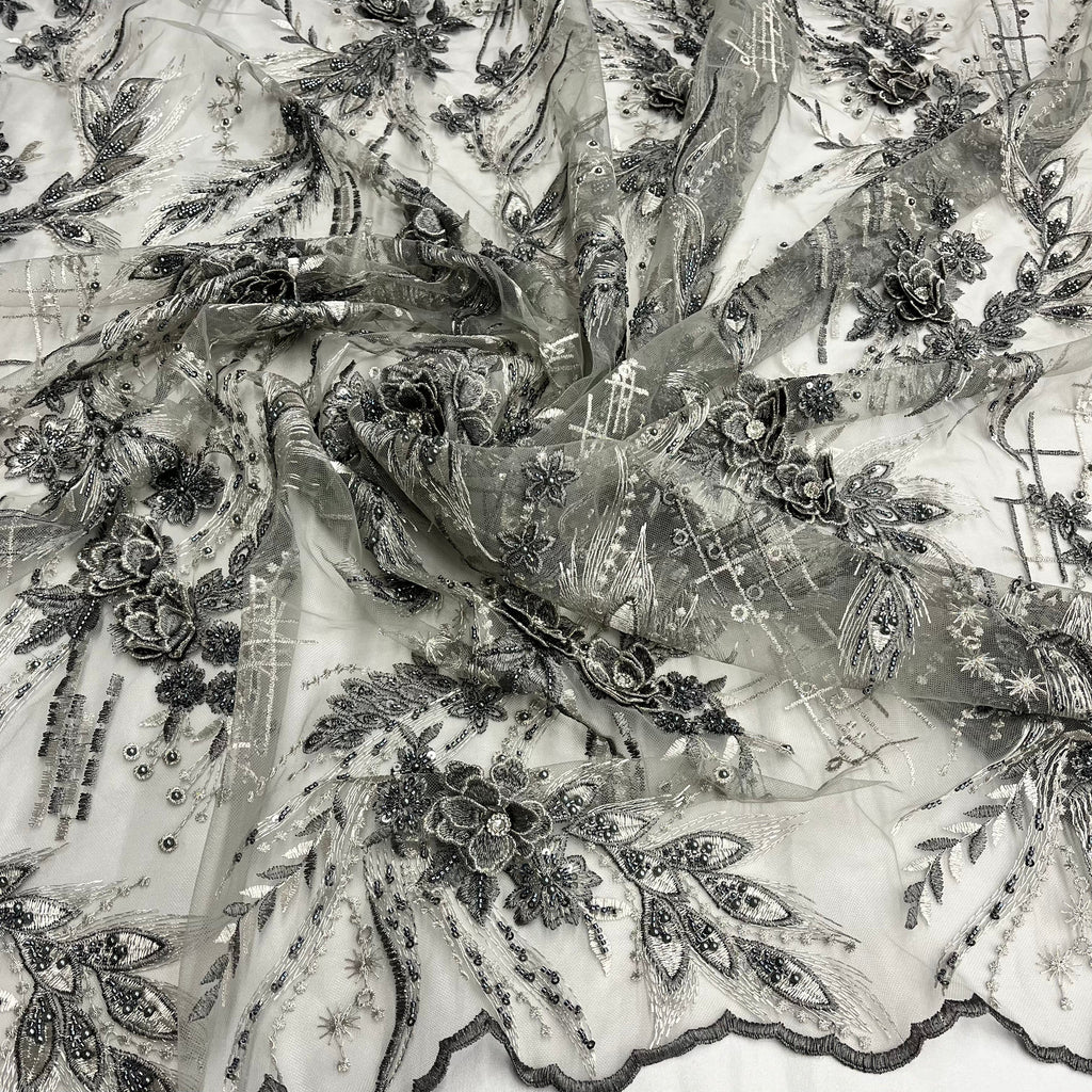 Beaded & Rhinestone 3D Floral Lace Fabric Embroidered on 100% Polyester Net Mesh | Lace USA - GD-2266