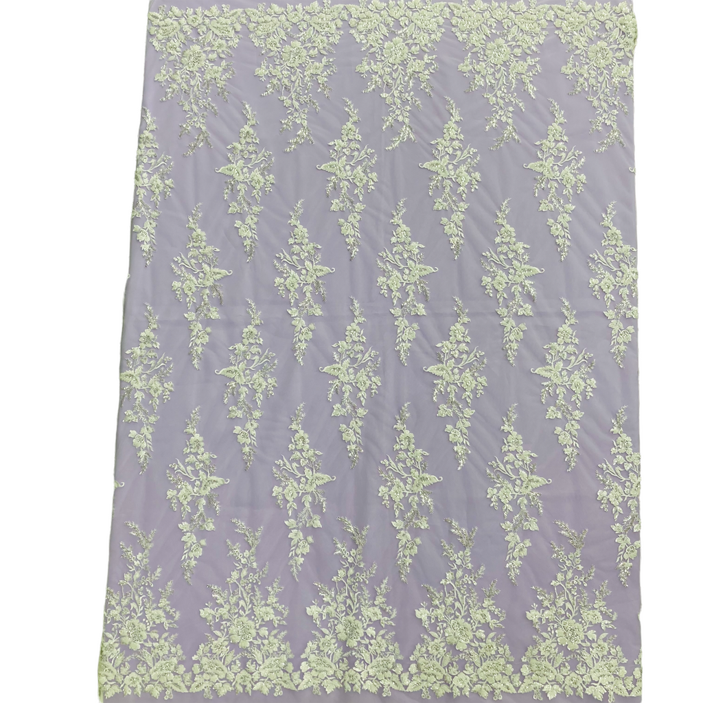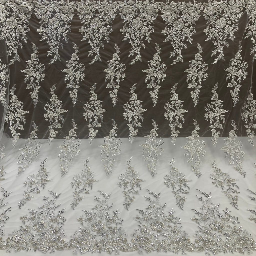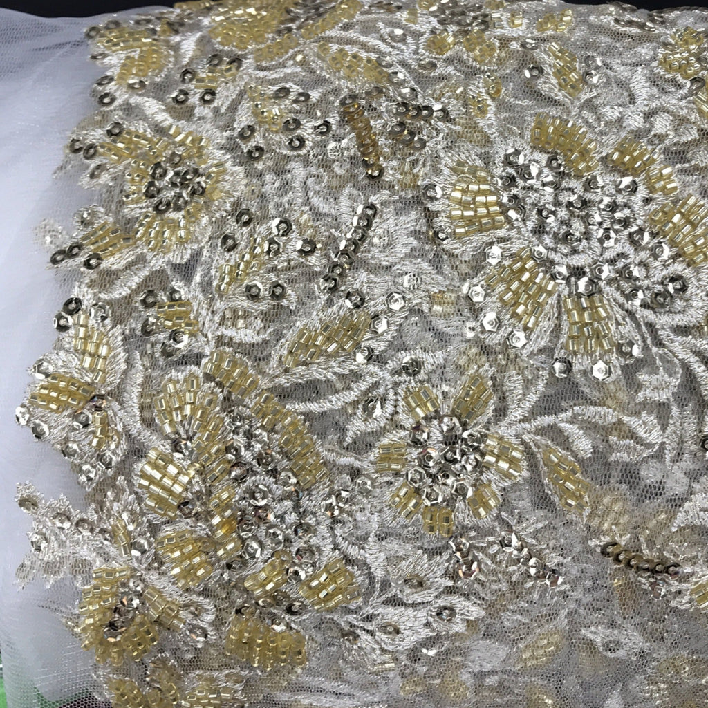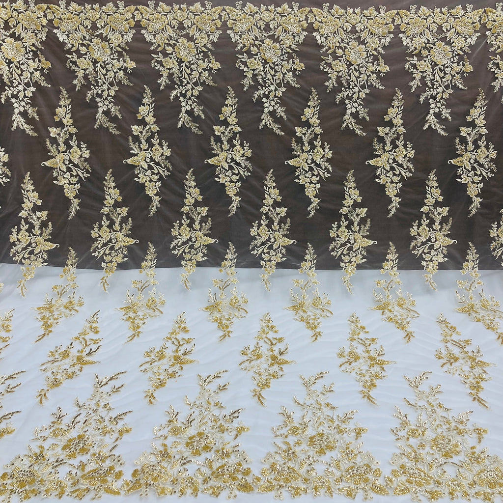 Beaded & Sequined Lace Fabric Embroidered on 100% Polyester Net Mesh | Lace USA - GD-12827