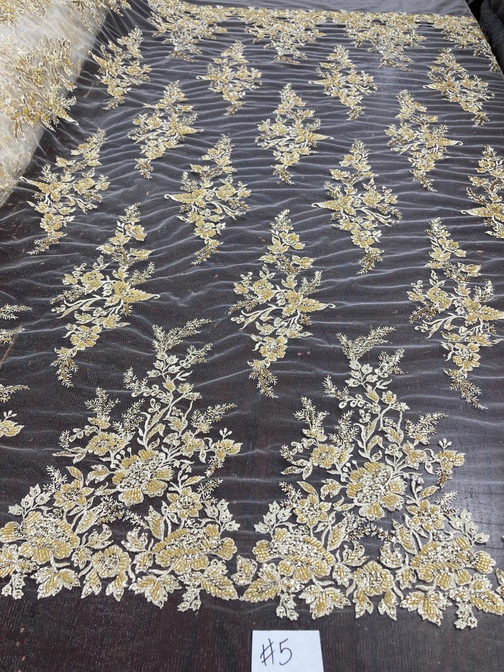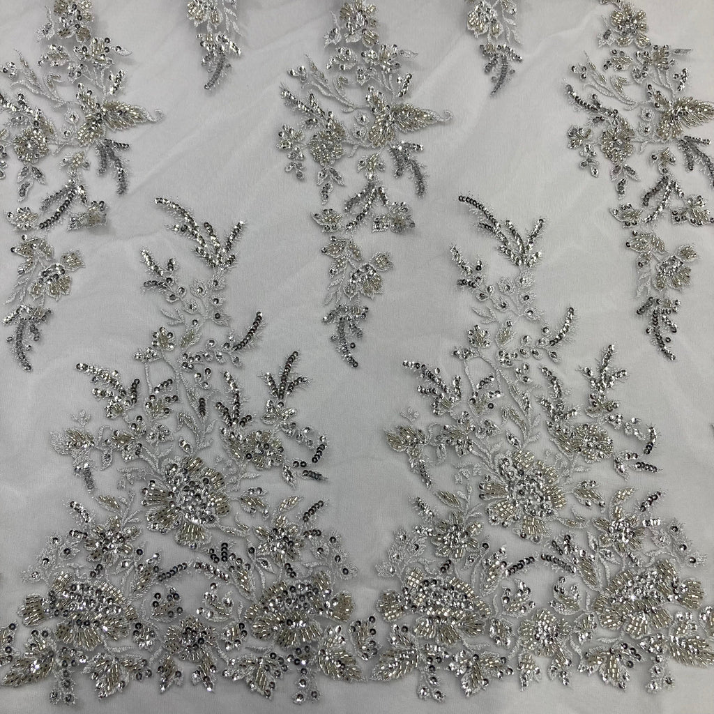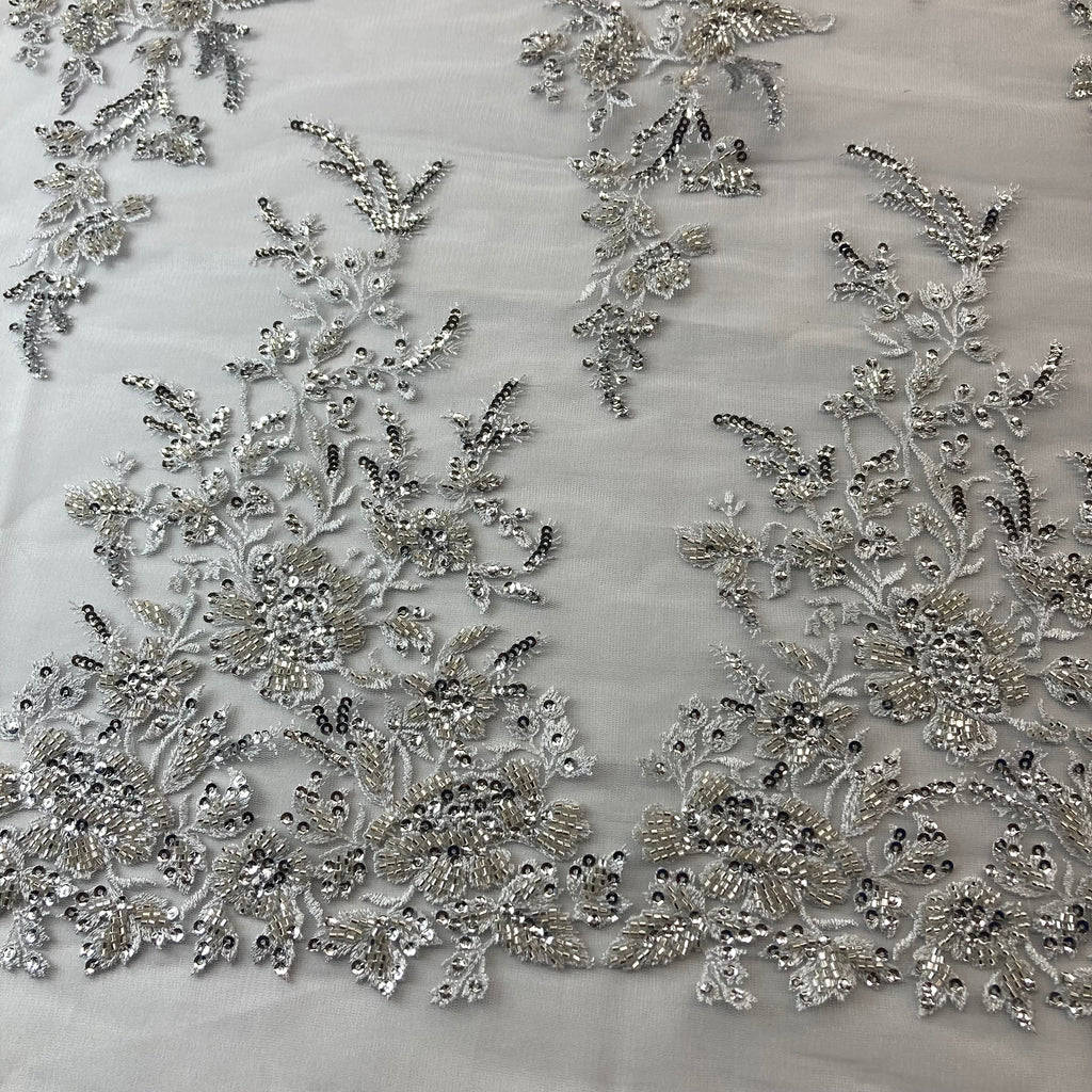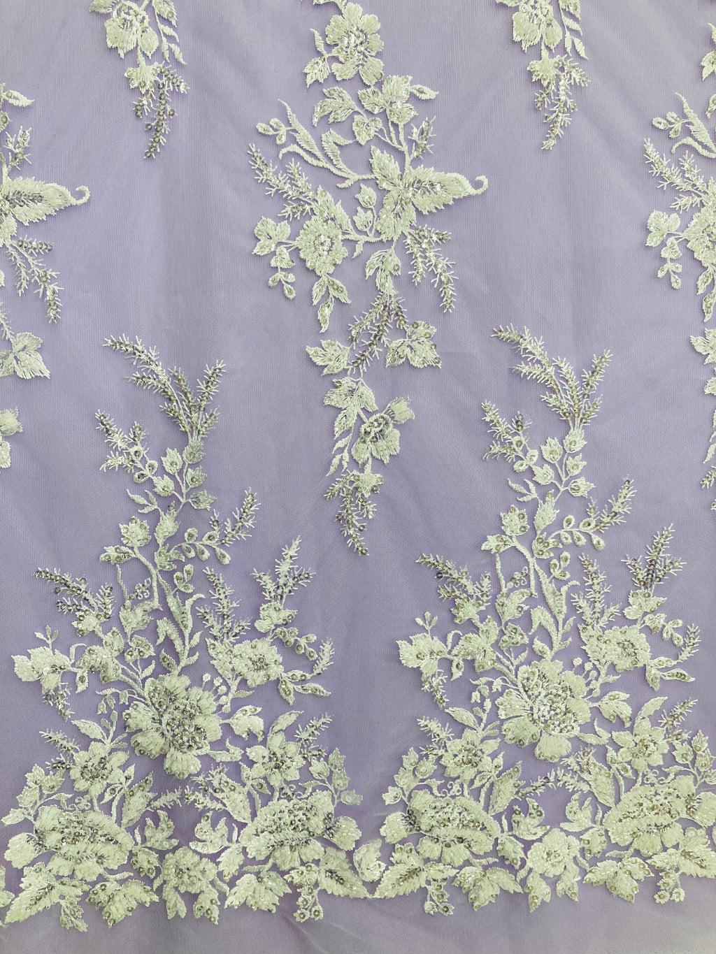 Beaded & Sequined Lace Fabric Embroidered on 100% Polyester Net Mesh | Lace USA - GD-12827