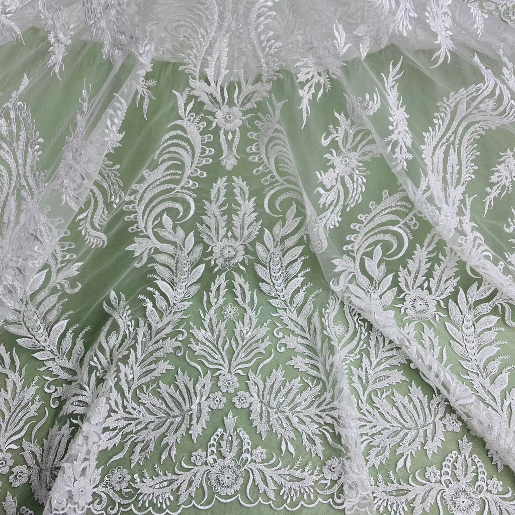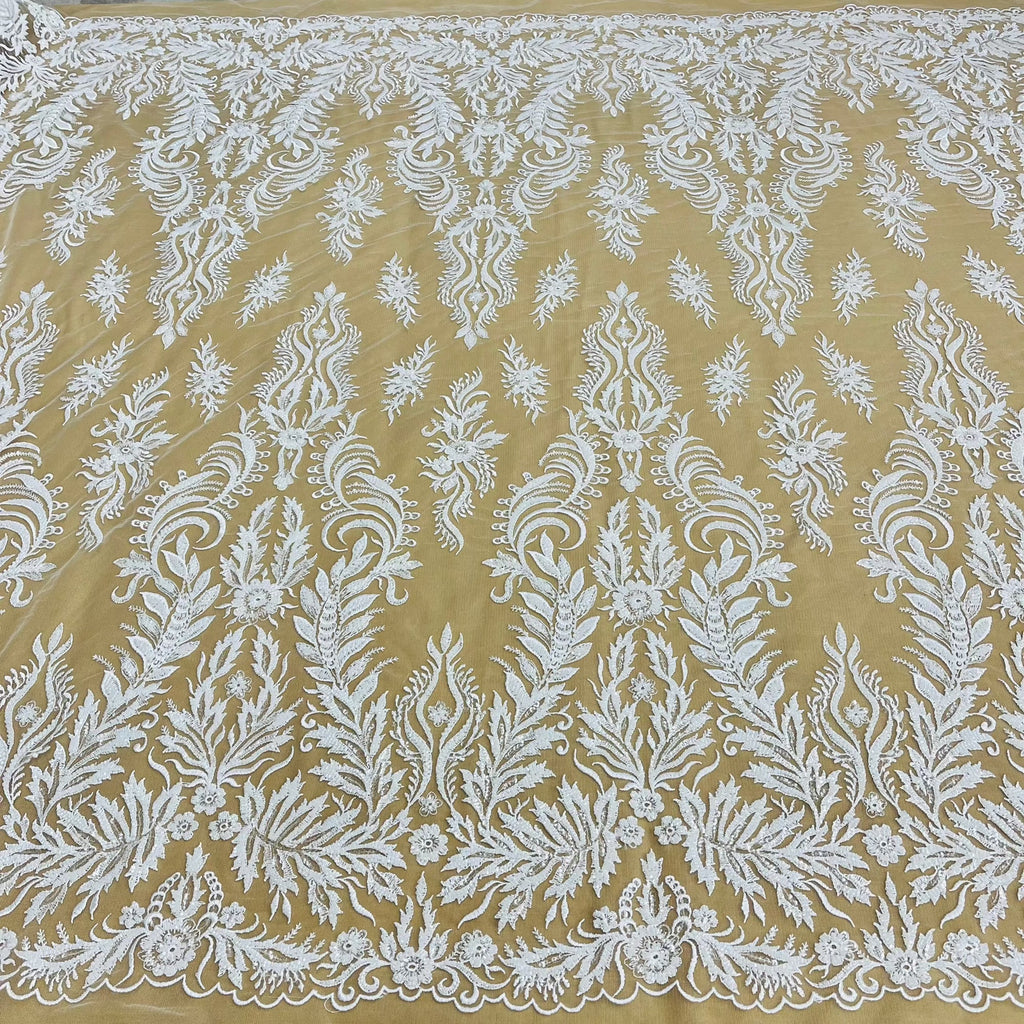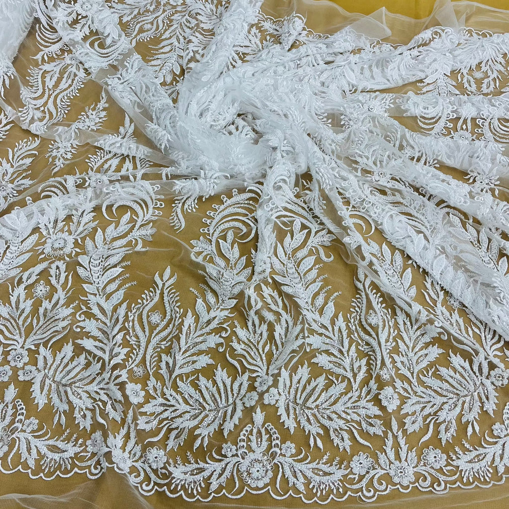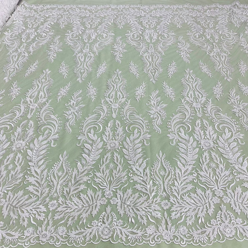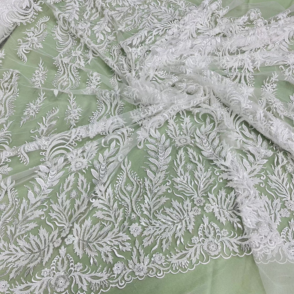 Beaded & Sequined Lace Fabric Embroidered on 100% Polyester Net Mesh | Lace USA - GD-13322