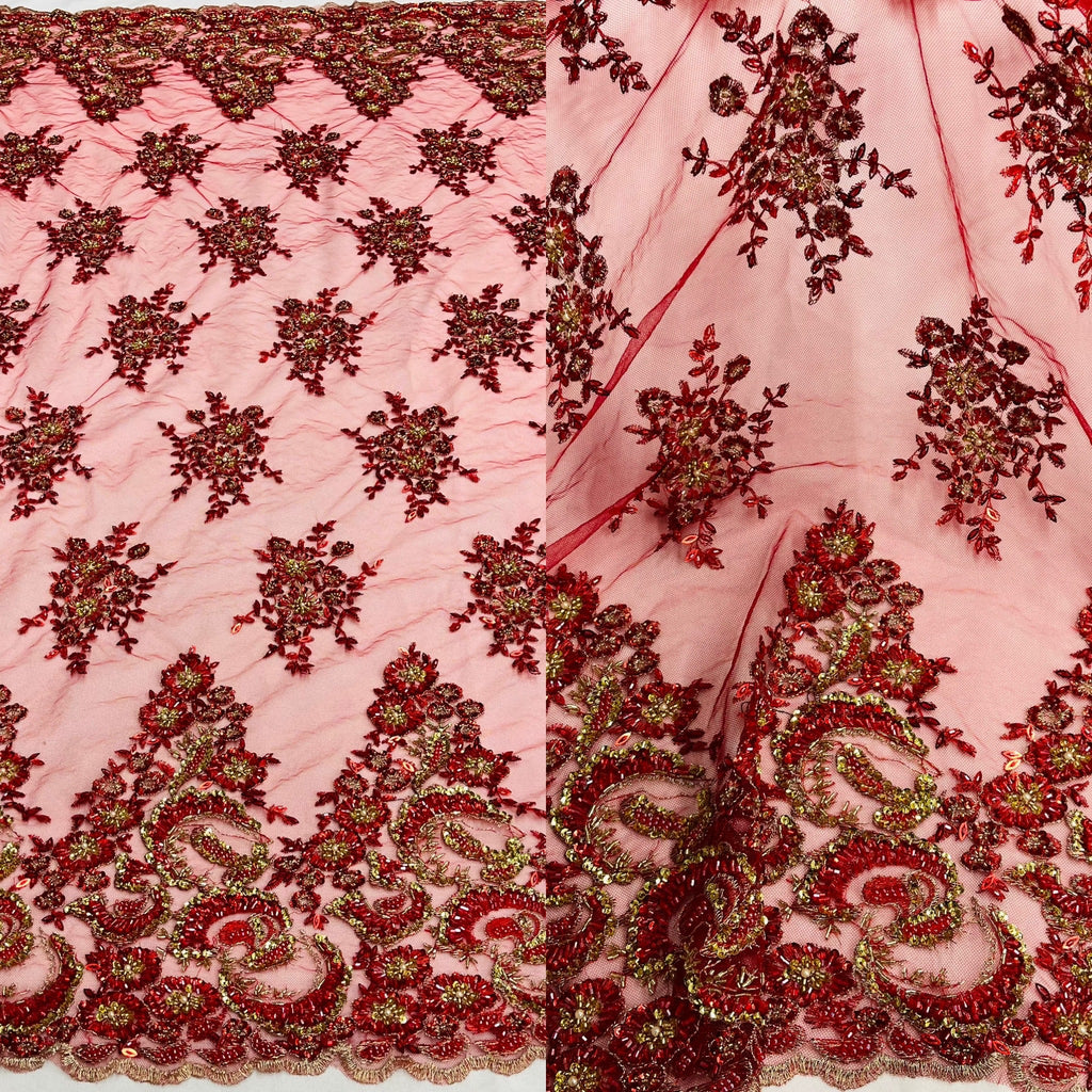 Beaded & Sequined Lace Fabric Embroidered on 100% Polyester Net Mesh | Lace USA - GD-201