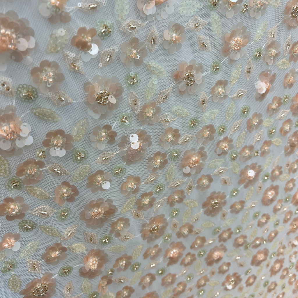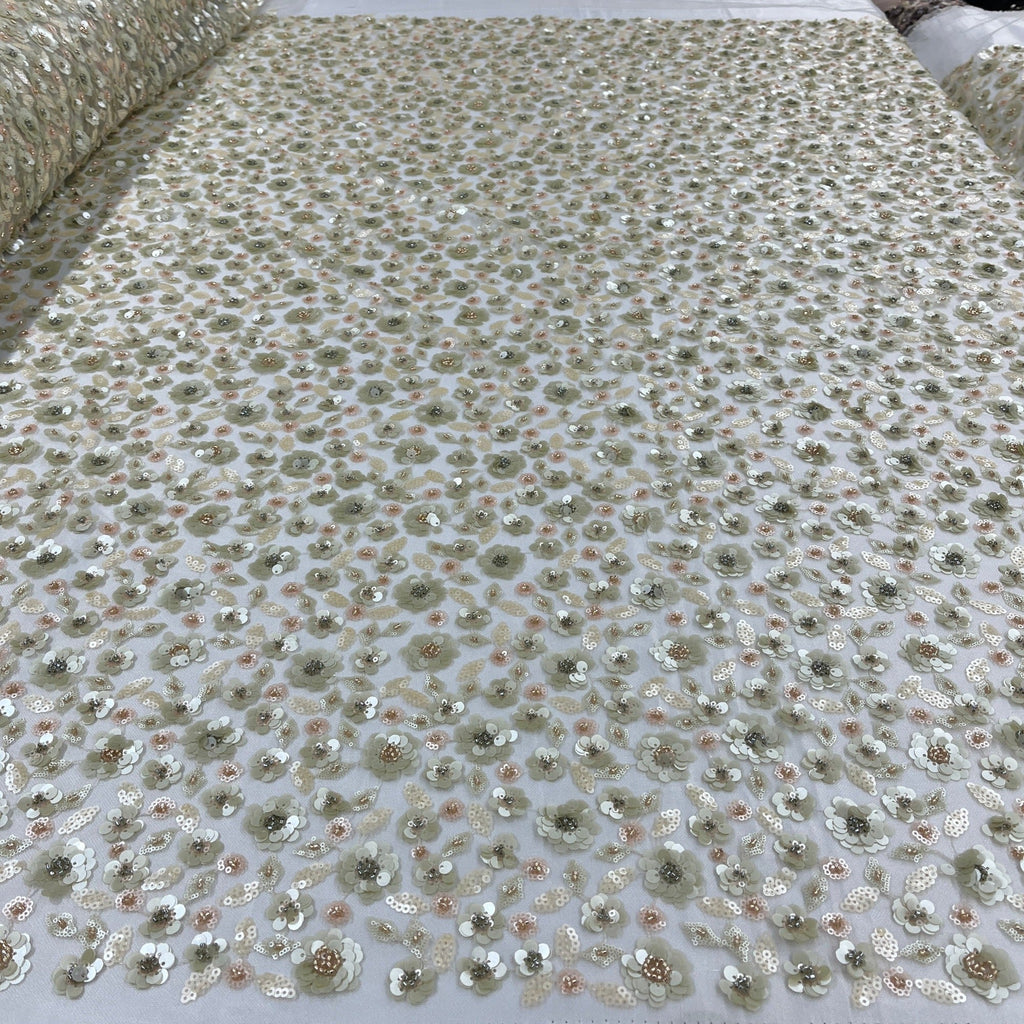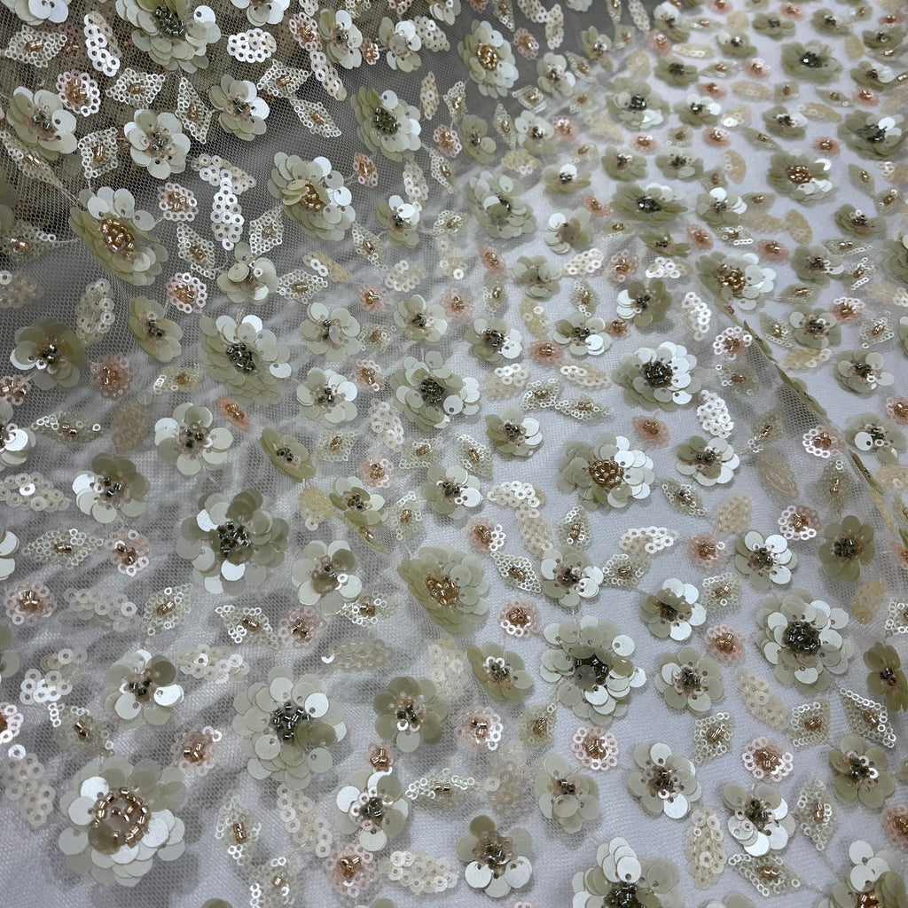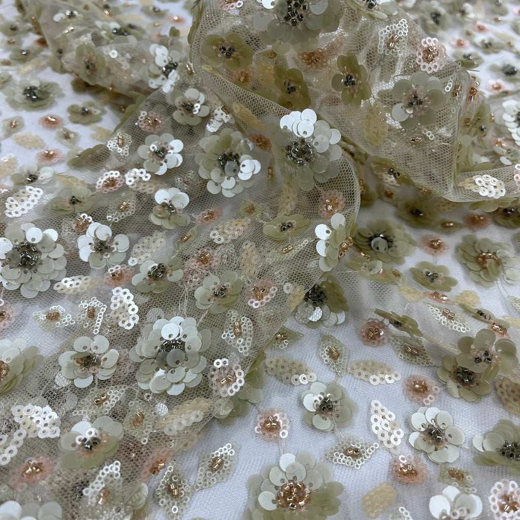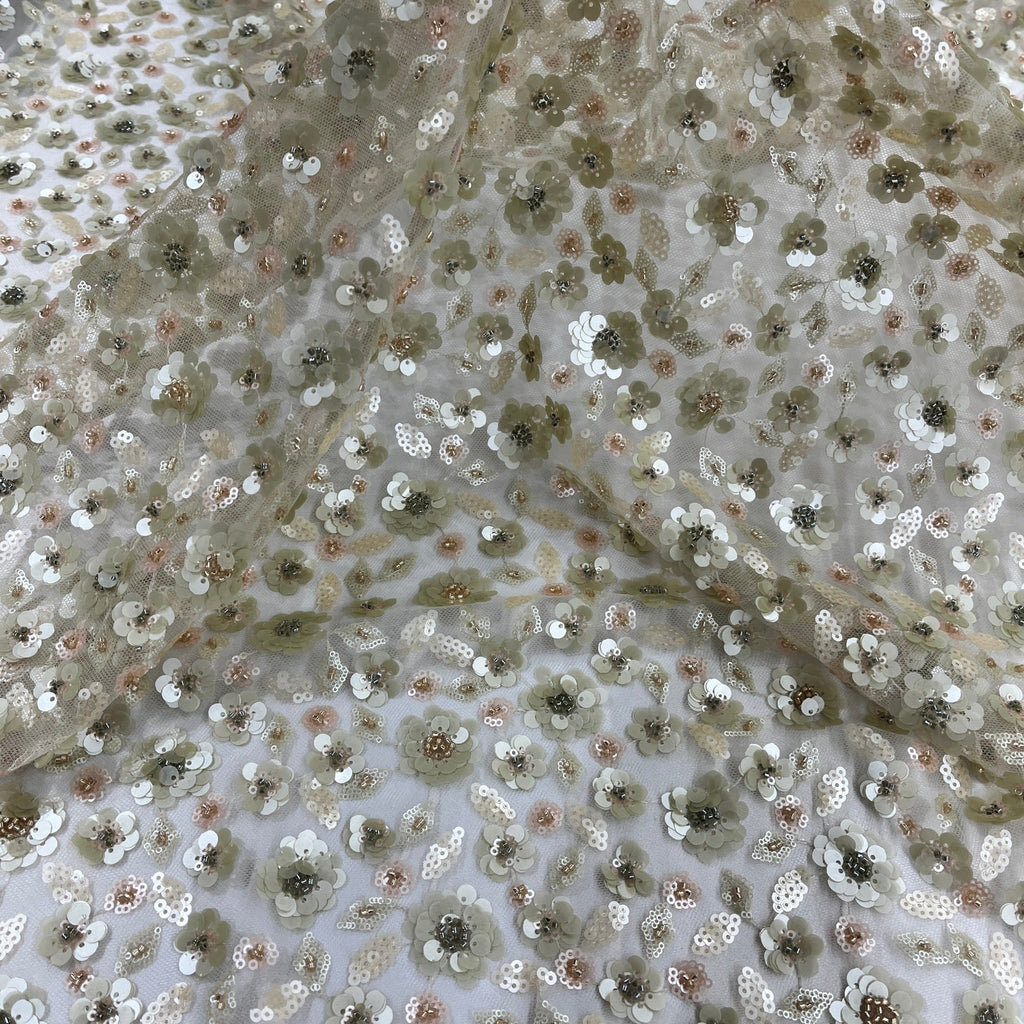 Beaded & Sequined Lace Fabric Embroidered on 100% Polyester Net Mesh | Lace USA - GD-2193