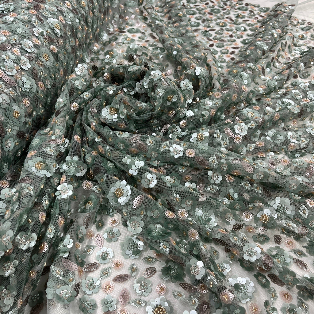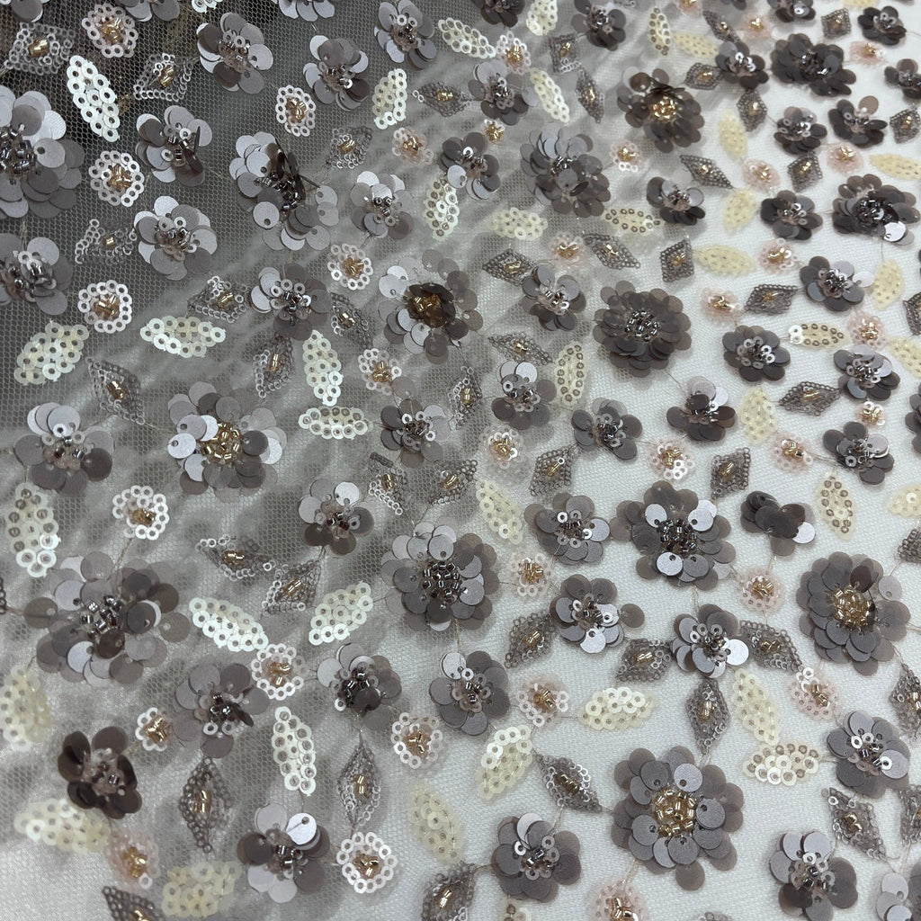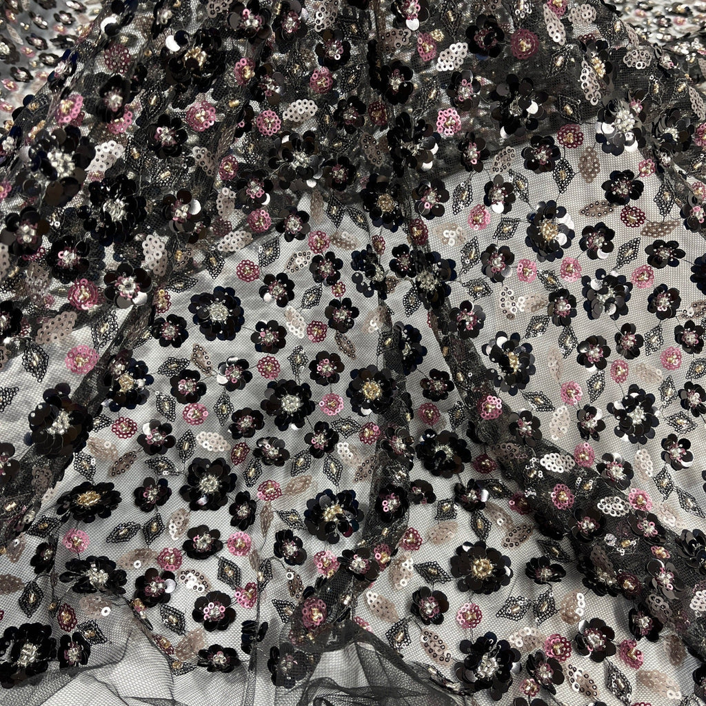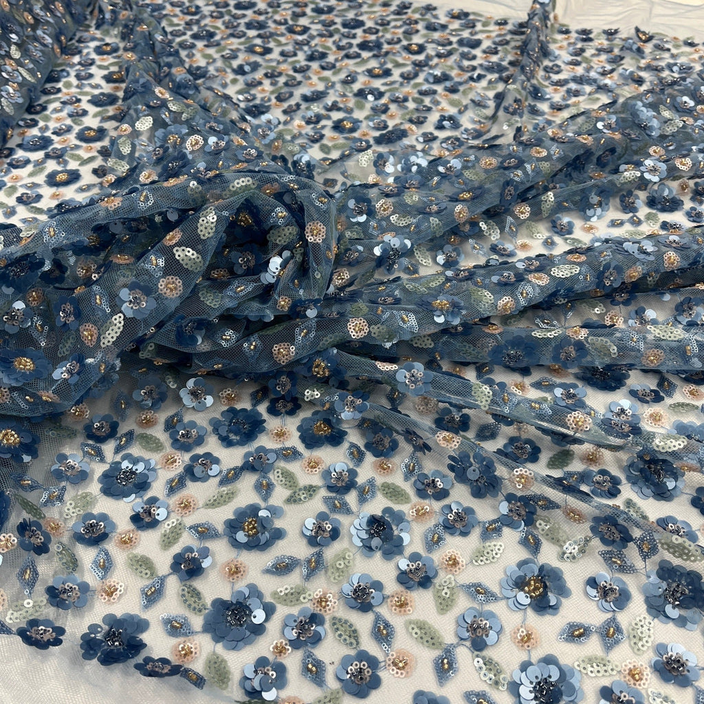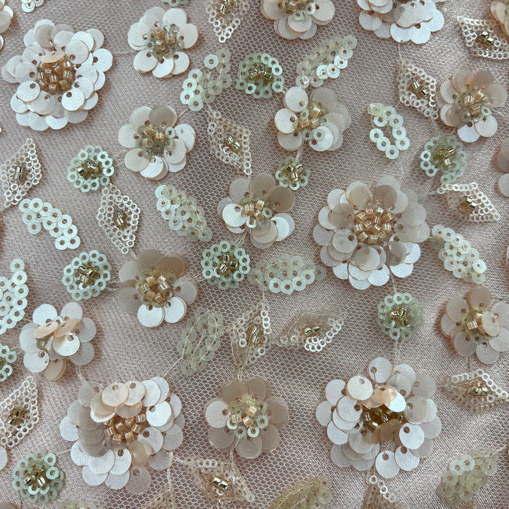 Beaded & Sequined Lace Fabric Embroidered on 100% Polyester Net Mesh | Lace USA - GD-2193