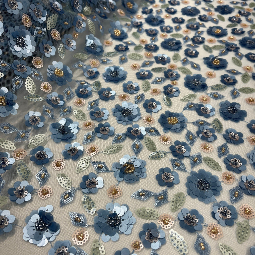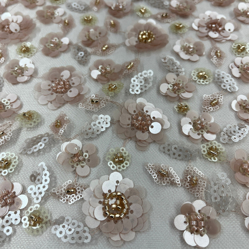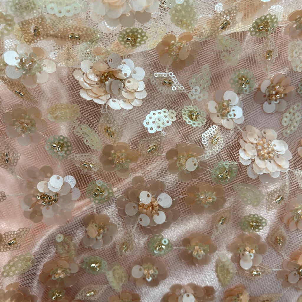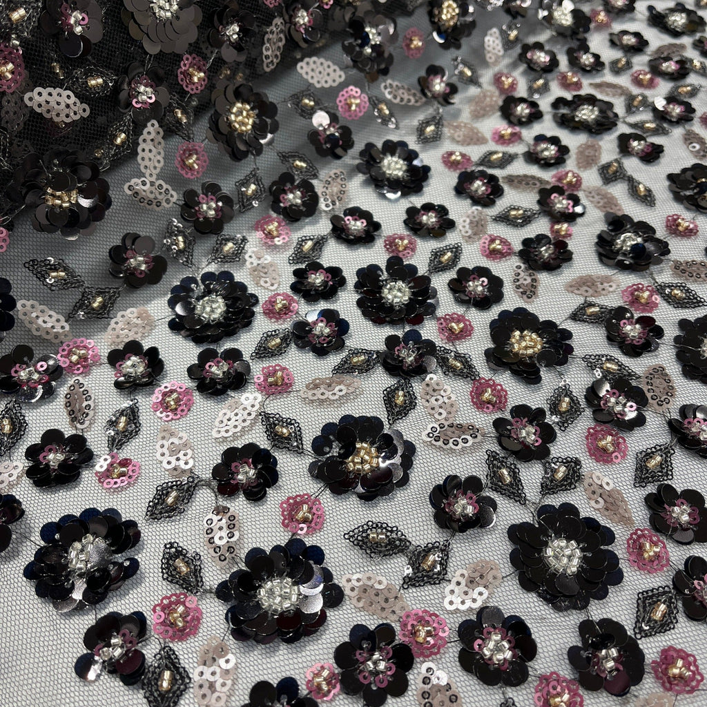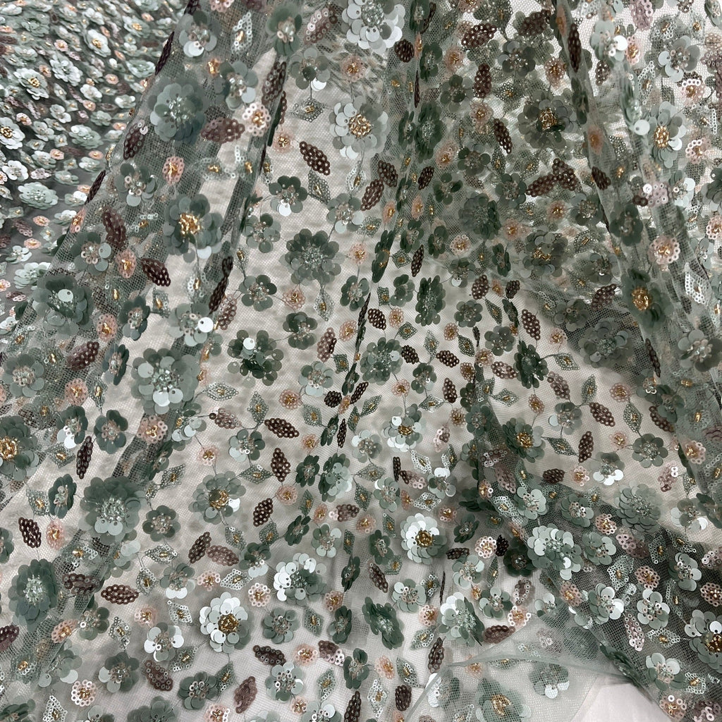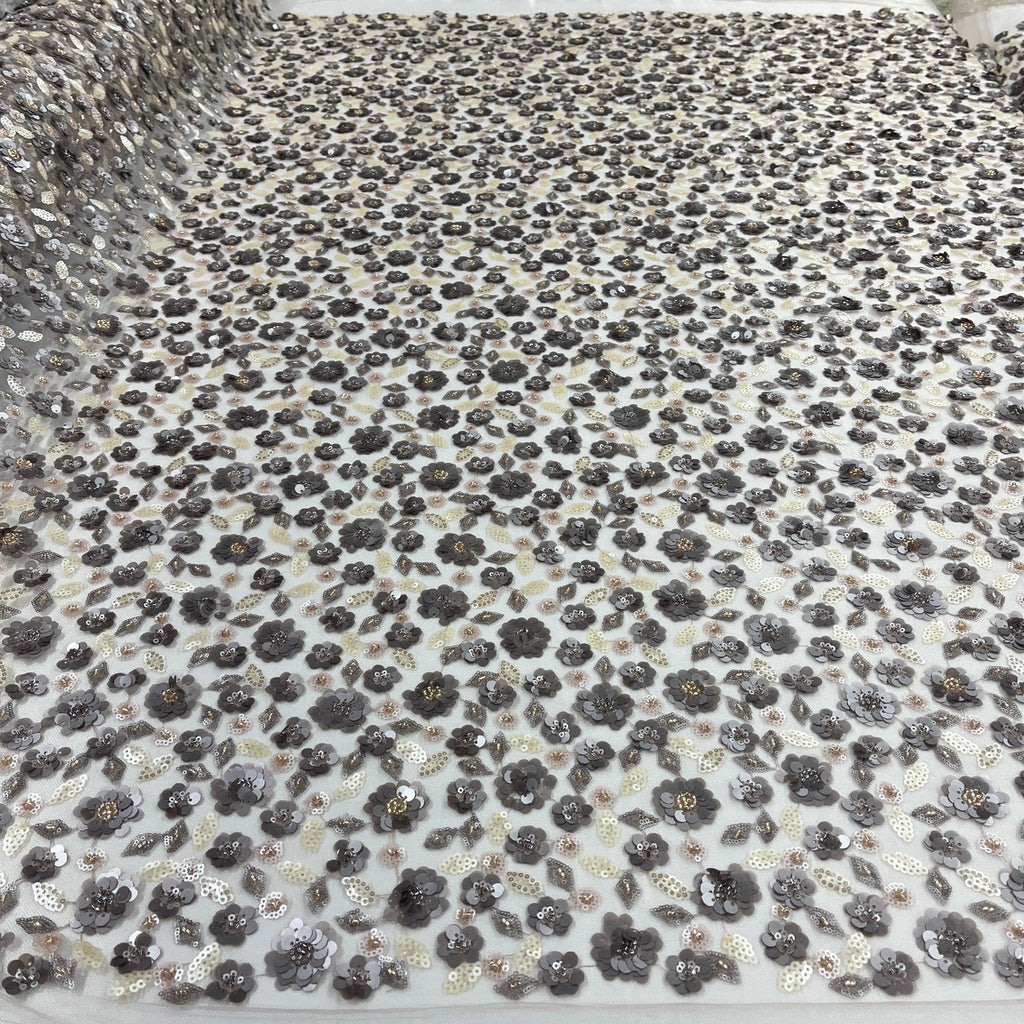 Beaded & Sequined Lace Fabric Embroidered on 100% Polyester Net Mesh | Lace USA - GD-2193