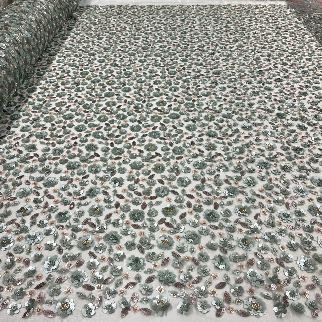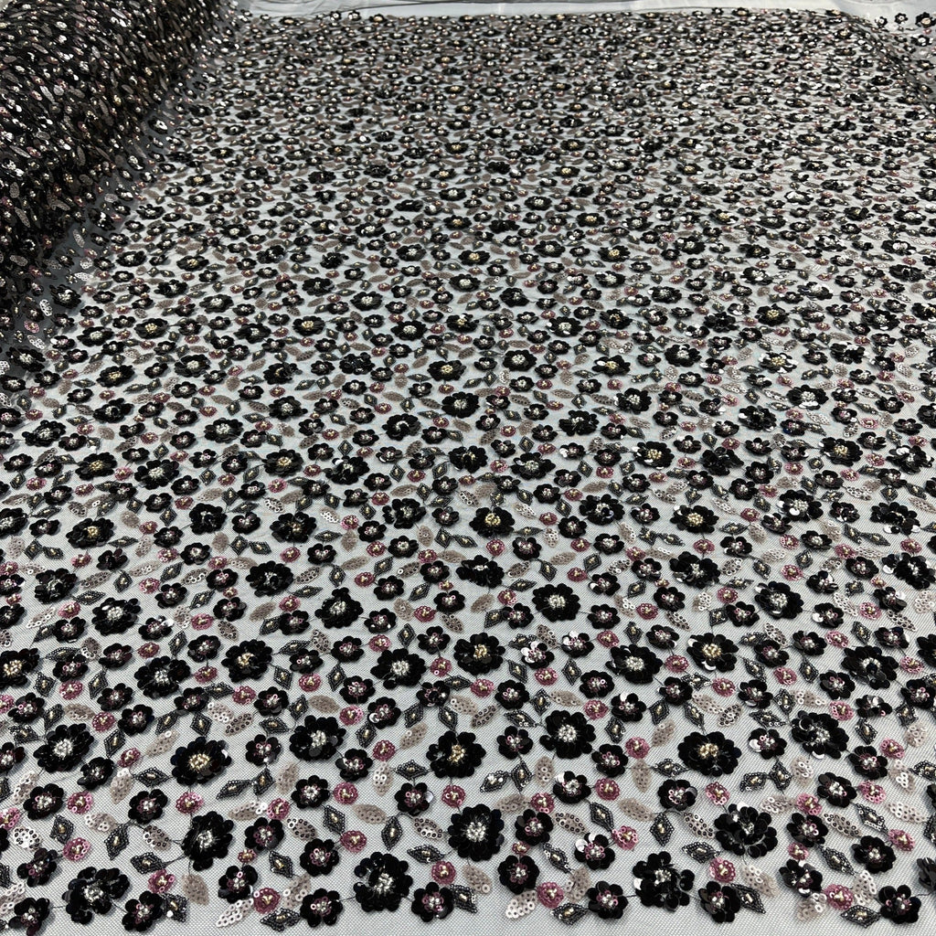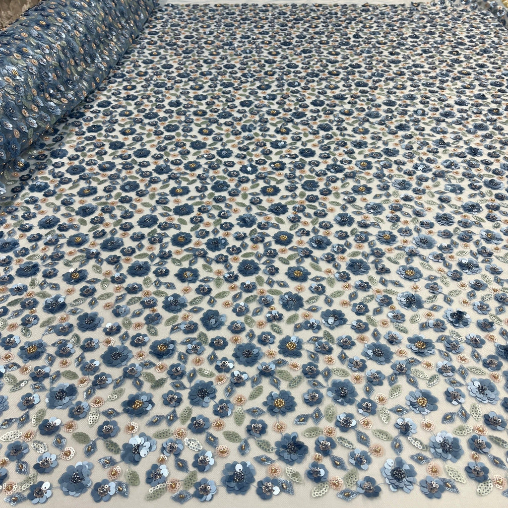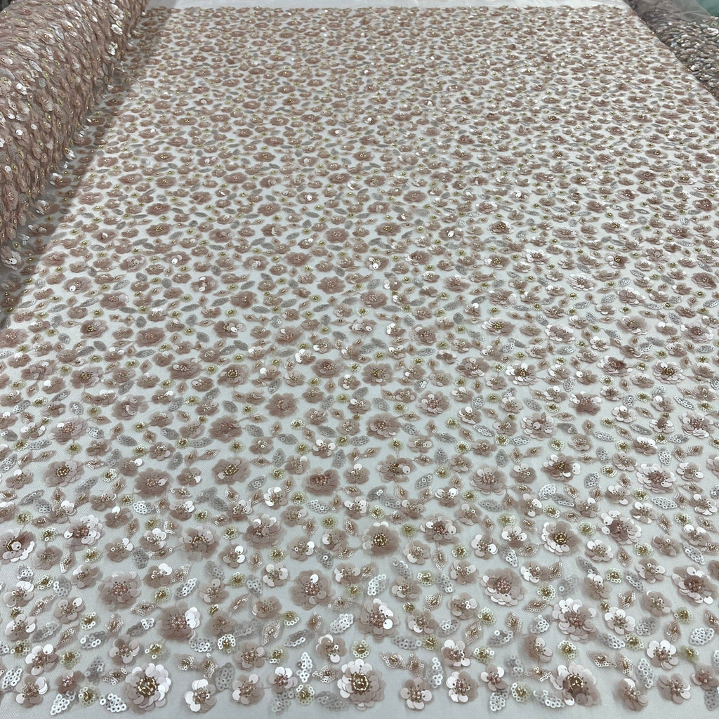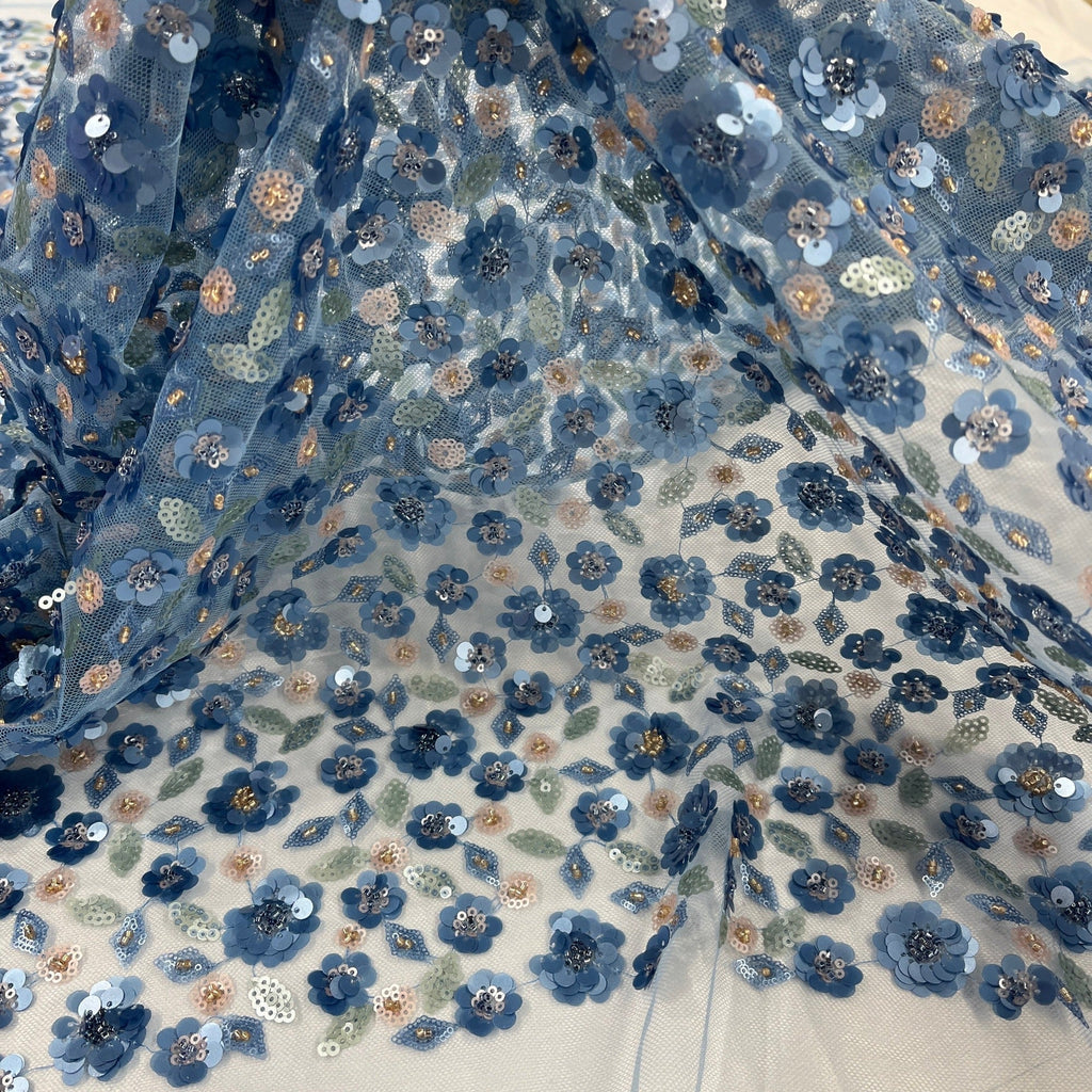 Beaded & Sequined Lace Fabric Embroidered on 100% Polyester Net Mesh | Lace USA - GD-2193