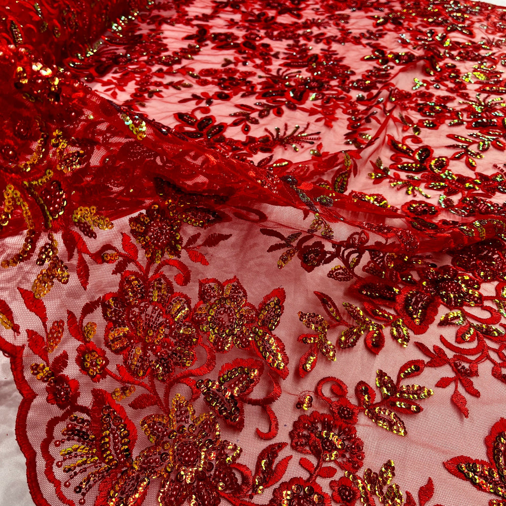 Beaded & Sequined Sparkling Floral Lace Fabric – Scalloped Edges | Lace USA - GD-2218