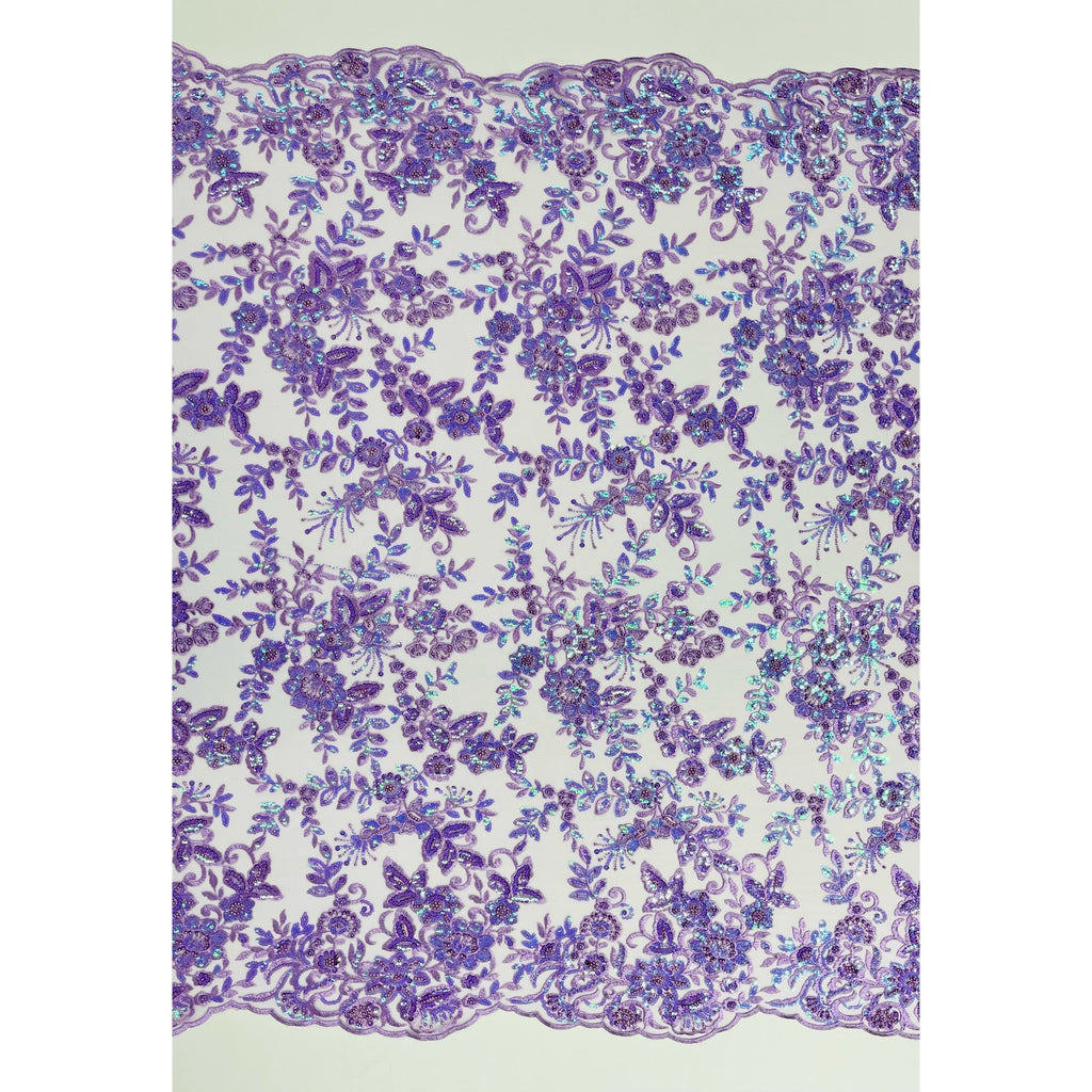 Add a touch of glamour to your designs with Lace USA’s exquisite Beaded & Sequined Lace Fabric. Crafted on 100% polyester net mesh, this elegant fabric features a detailed floral design and scalloped edging on both sides, heavily embellished with shimmering beads and sequins for a radiant, luxurious finish.