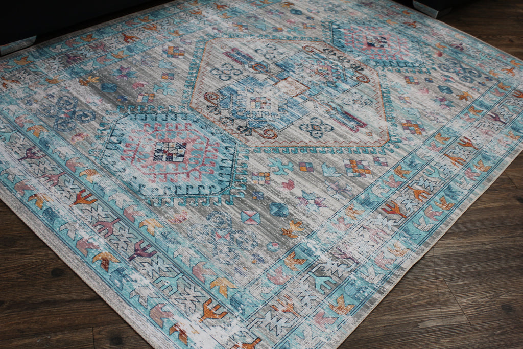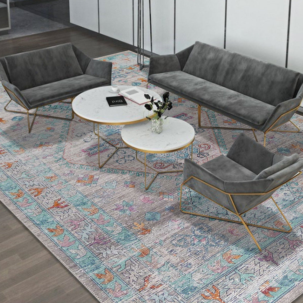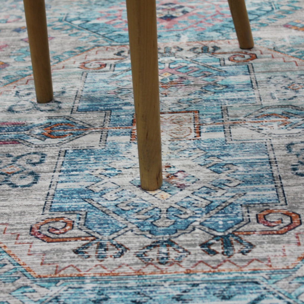 Beige Blue Orange Tones Vintage Faded Print Style Area Rug/ Carpet