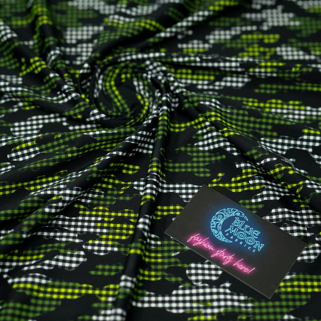 Camouflage Plaid Printed Spandex Fabric | Blue Moon Fabrics