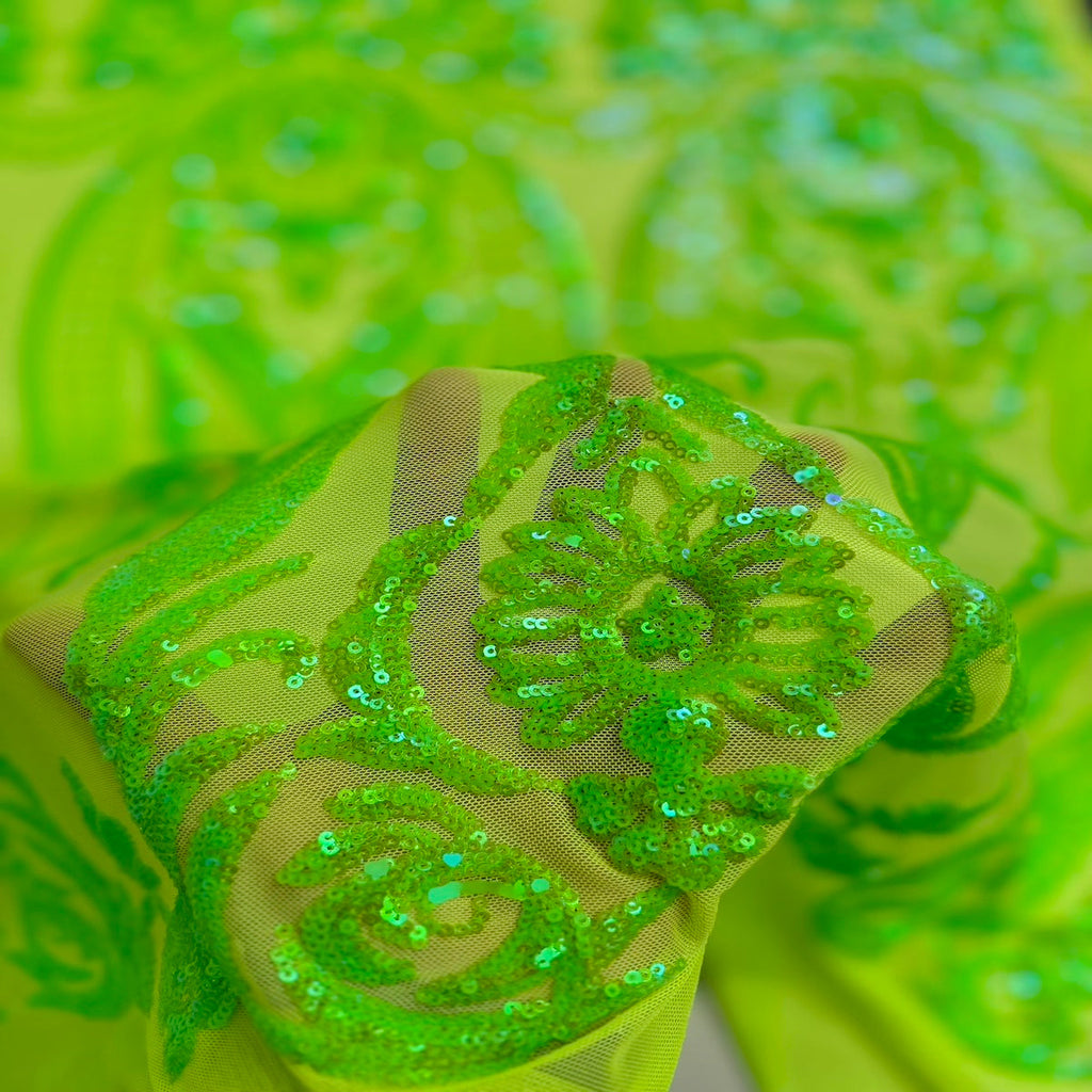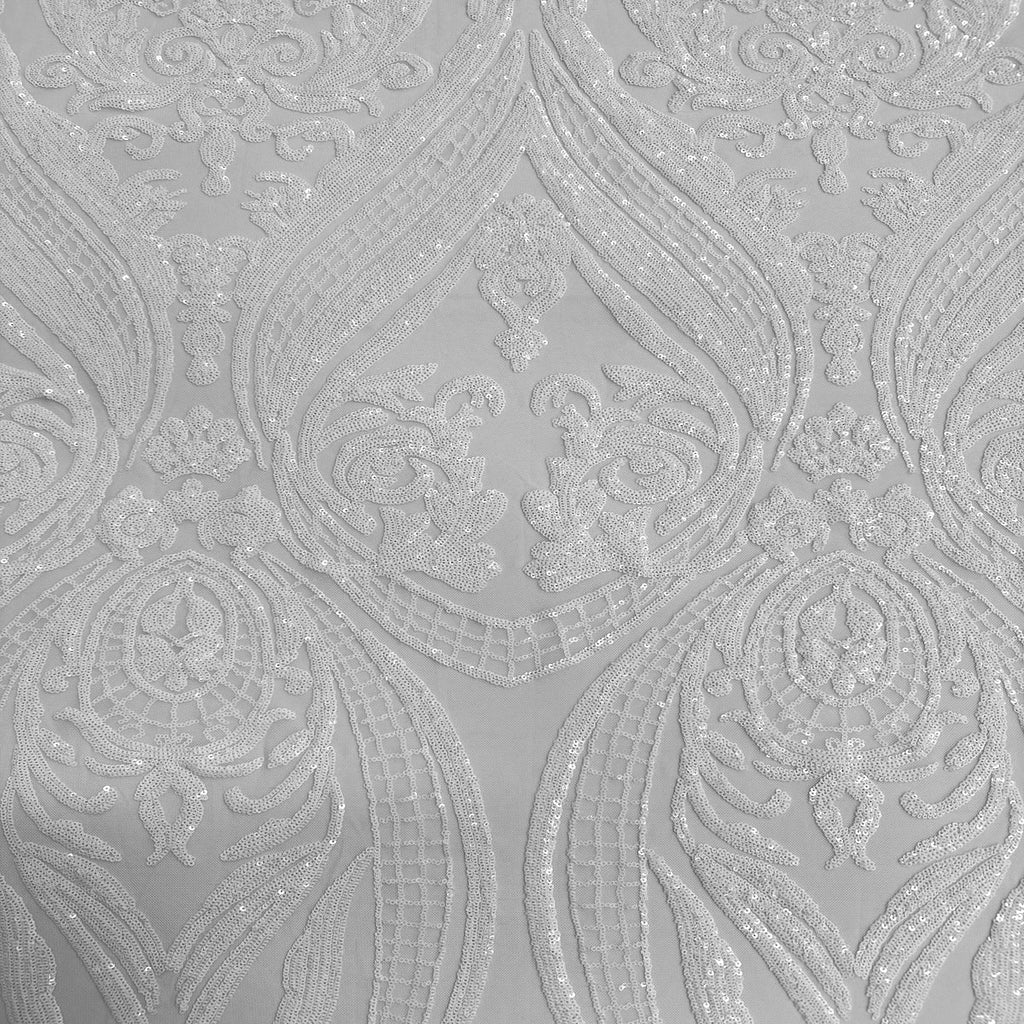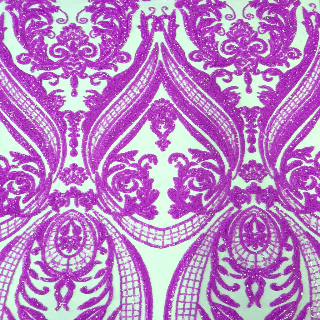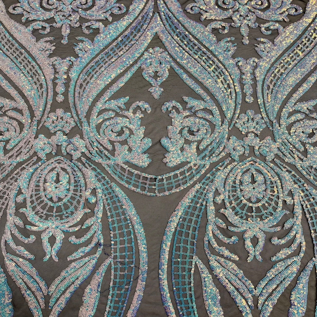 This beautiful and elegant Catina Sequins Lace Fabric is truly one of a kind. Each fabric is backed with a four-way stretch nylon mesh, showcasing a stunning sequin design throughout. Sold by the yard, if more than one yard is purchased, you will receive your fabric in a continuous piece; for example, ordering two yards will yield a piece measuring 60" x 72".