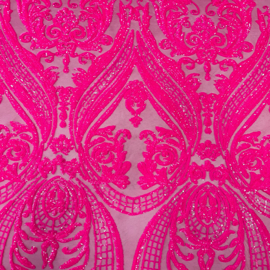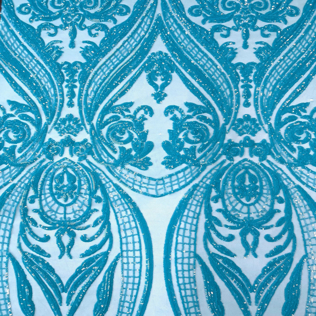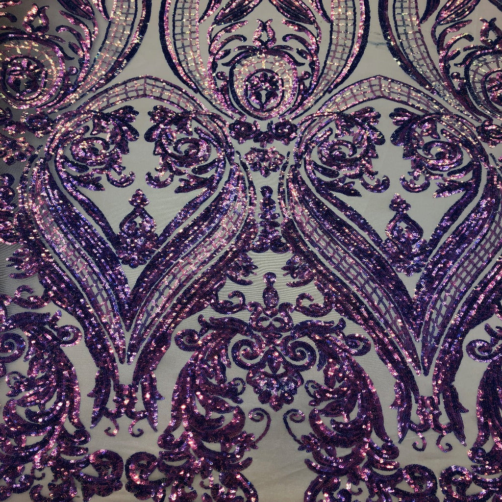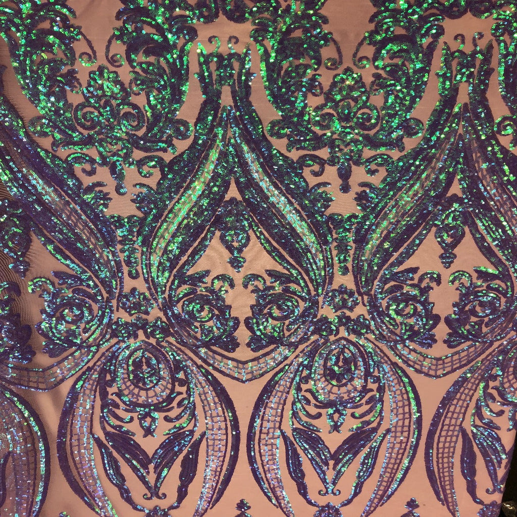 This beautiful and elegant Catina Sequins Lace Fabric is truly one of a kind. Each fabric is backed with a four-way stretch nylon mesh, showcasing a stunning sequin design throughout. Sold by the yard, if more than one yard is purchased, you will receive your fabric in a continuous piece; for example, ordering two yards will yield a piece measuring 60" x 72".