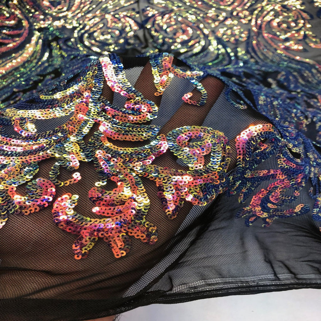 Width: The mesh measures 60", while the sequins range from 52" to 54".