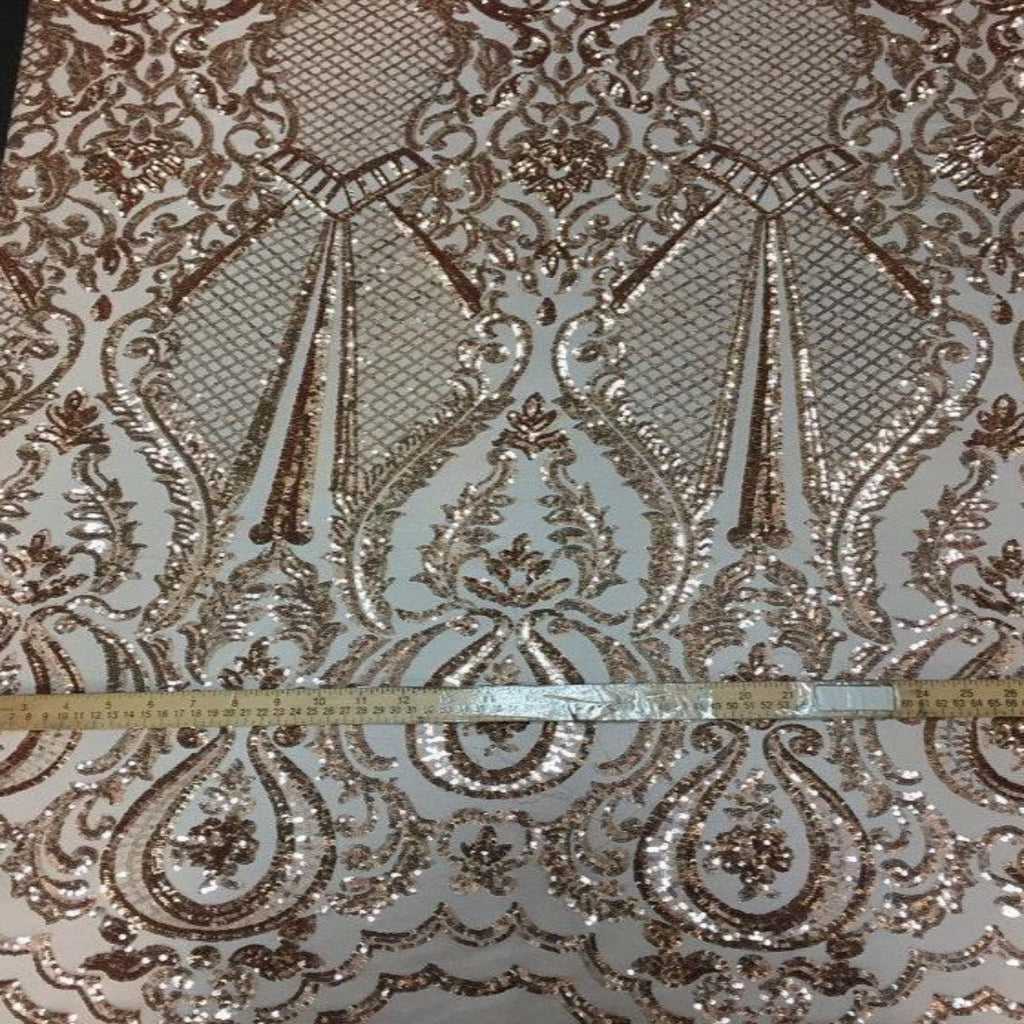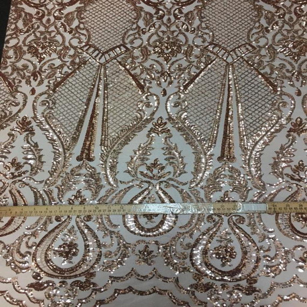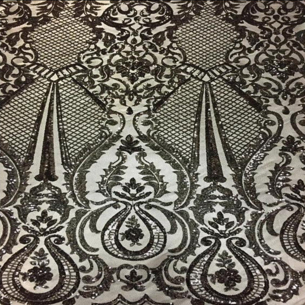Sold by the yard, this fabric ensures convenience for your crafting needs. When purchasing multiple yards, you will receive your fabric in a continuous piece, allowing for seamless designs. For instance, ordering two yards means you will receive a generous piece measuring 60" x 72". The fabric is designed with a soft mesh backing that enhances its elegance.