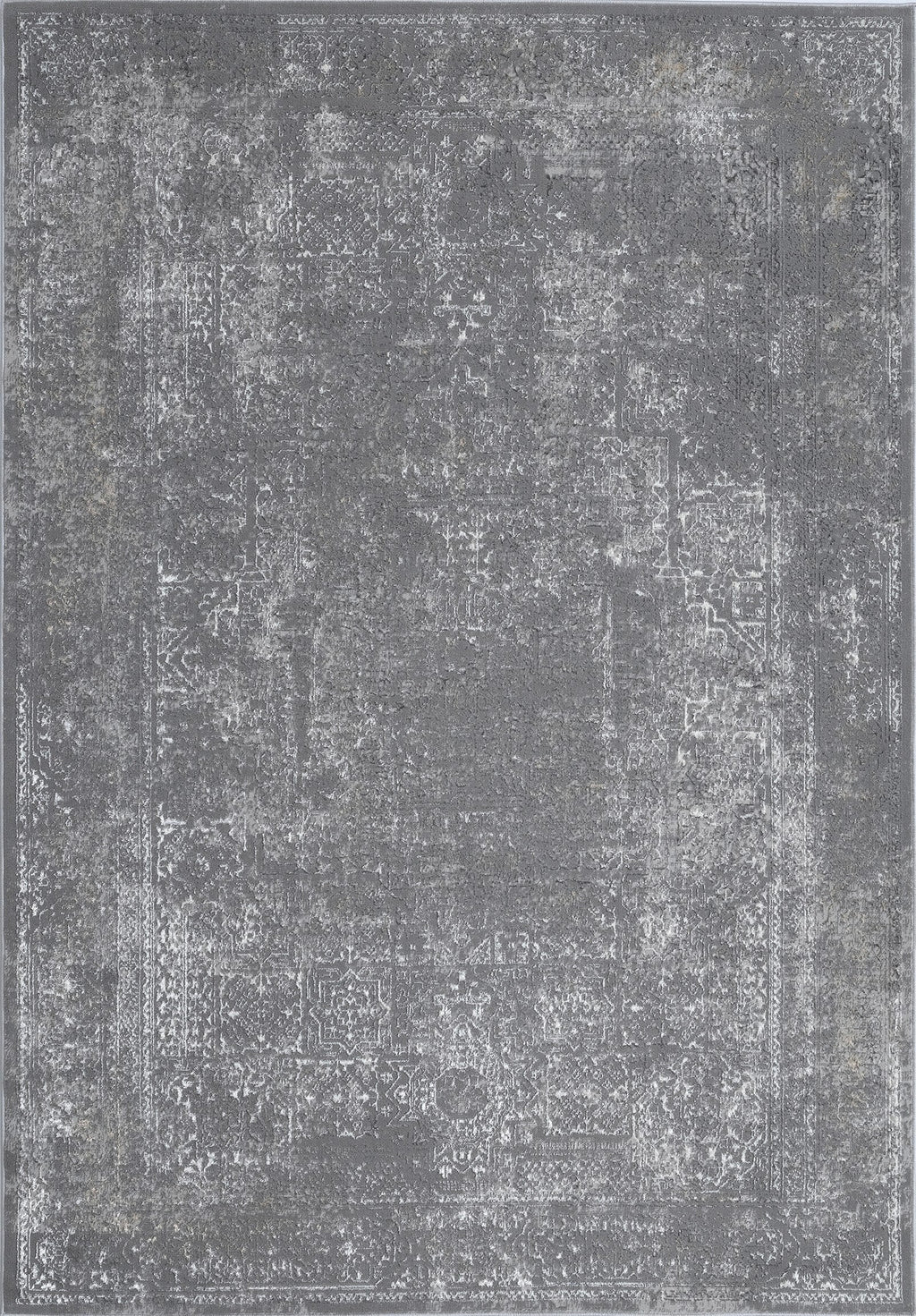 Charcoal Grey High-Low Rug with Elegant Silver Oriental Design and Bronze Touches - KAI 205