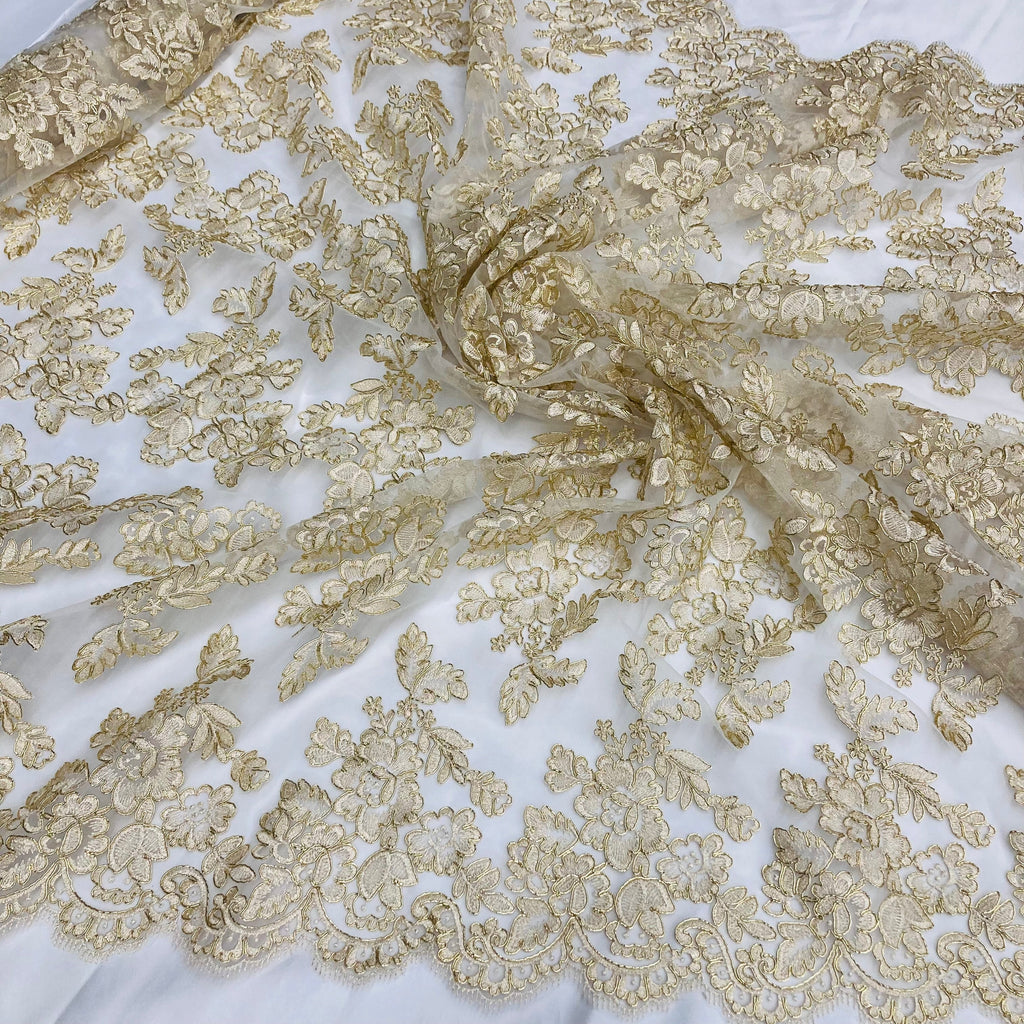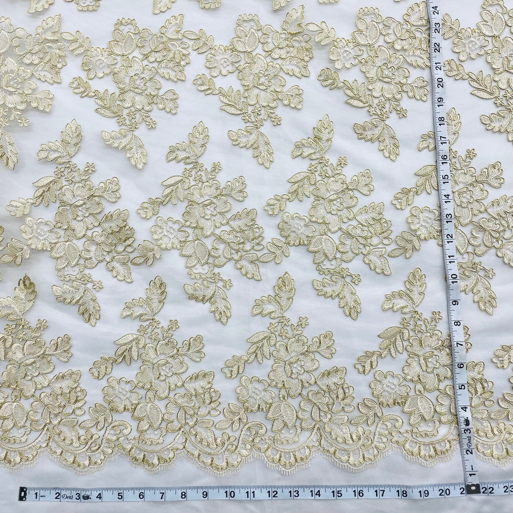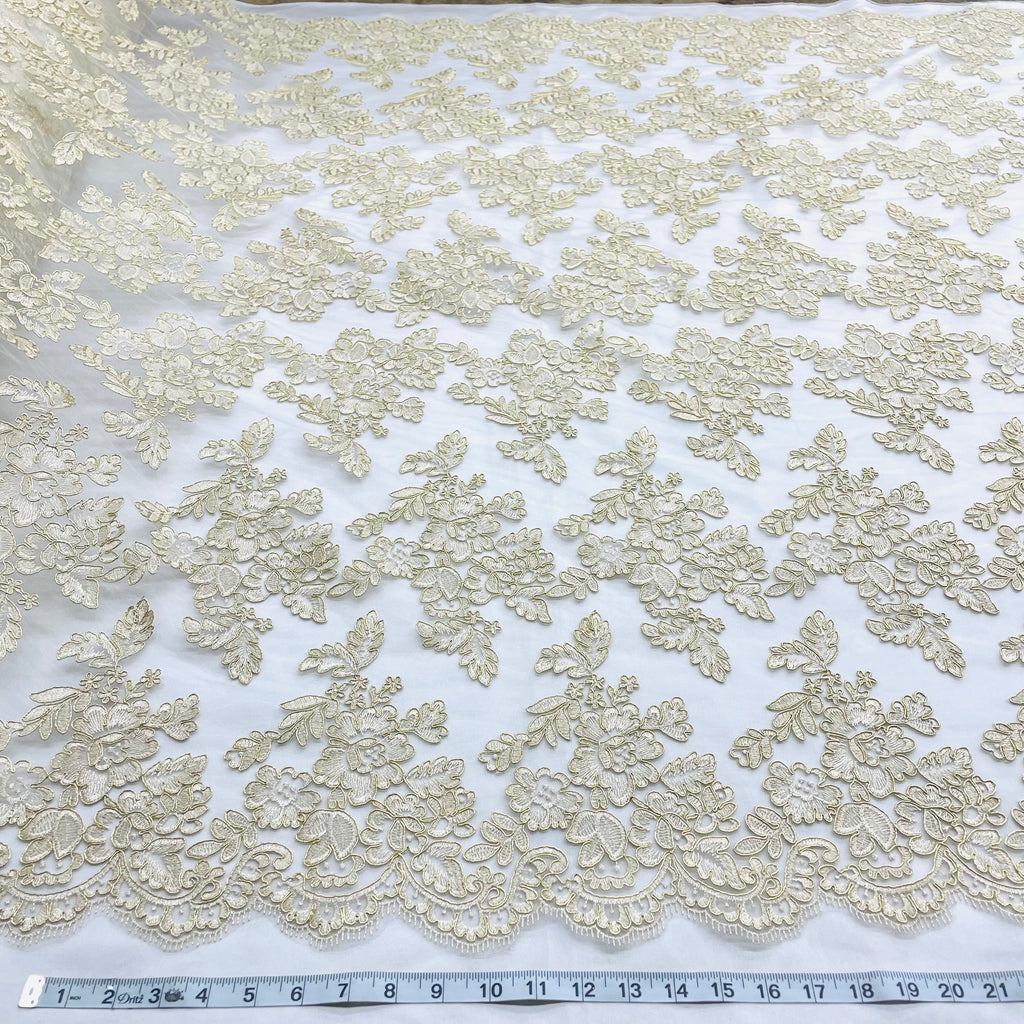 Corded Bridal Lace Fabric Embroidered on 100% Polyester Net Mesh | Lace USA - 95409W