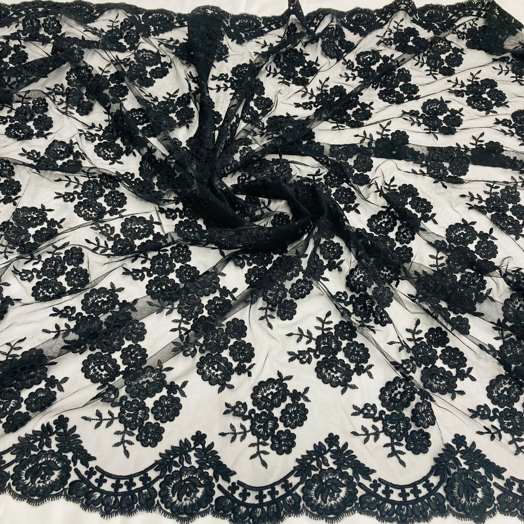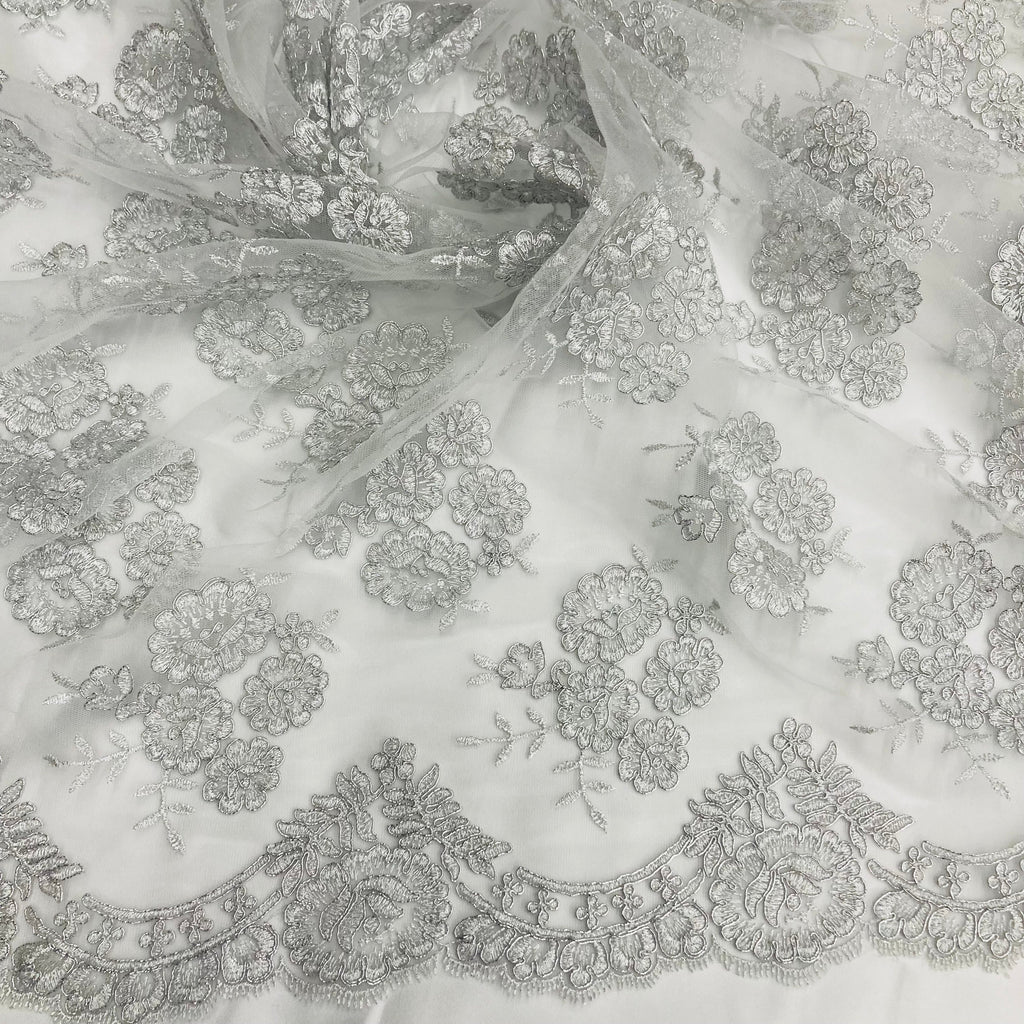 Corded Bridal Lace Fabric Embroidered on 100% Polyester Net Mesh | Lace USA - 95412W