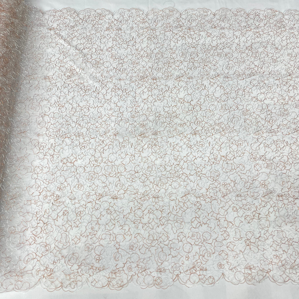 Introducing our Corded Bridal Lace Fabric Embroidered on 100% Polyester Net Mesh, perfect for giving your wedding dresses, evening gowns, dance costumes and other couture creations a truly exquisite look. Our exquisite fabric is handmade and high quality, with 100% Polyester, and comes with 11 beautiful colors to choose from. You can feel assured that this fabric was designed with the quality and elegance of a couture fabric in mind. It features an embroidered lace design perfect for adding a touch of loveliness to any project. It's so lightweight and comfortable, you won't believe that you can get this lace fabric for such an incredible value. Whether you're looking for a classic bridal fabric or high end couture fabric, you can find it here with our Corded Bridal Lace Fabric Embroidered on 100% Polyester Net Mesh. It's easy to order, too; just select the desired length and color and we'll ship your order within 24 business hours. Order now to experience the beauty and quality of this premium embroidered fabric for yourself.