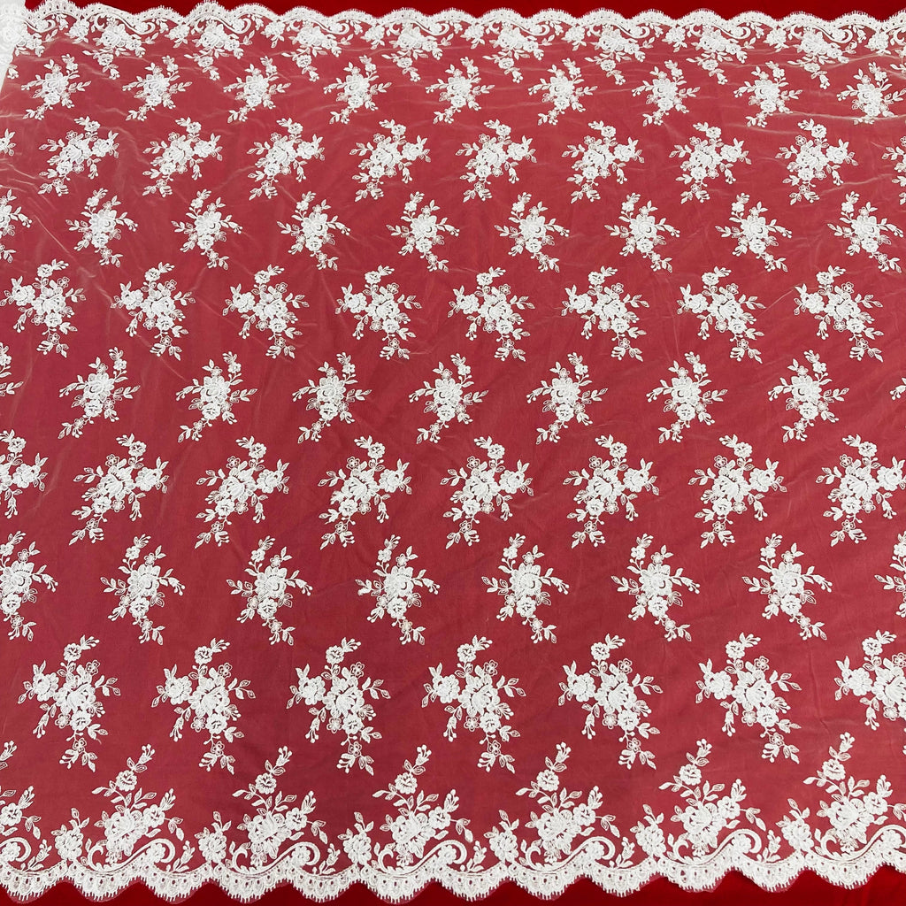 Corded Bridal Lace Fabric Embroidered on 100% Polyester Net Mesh | Lace USA - 96517W