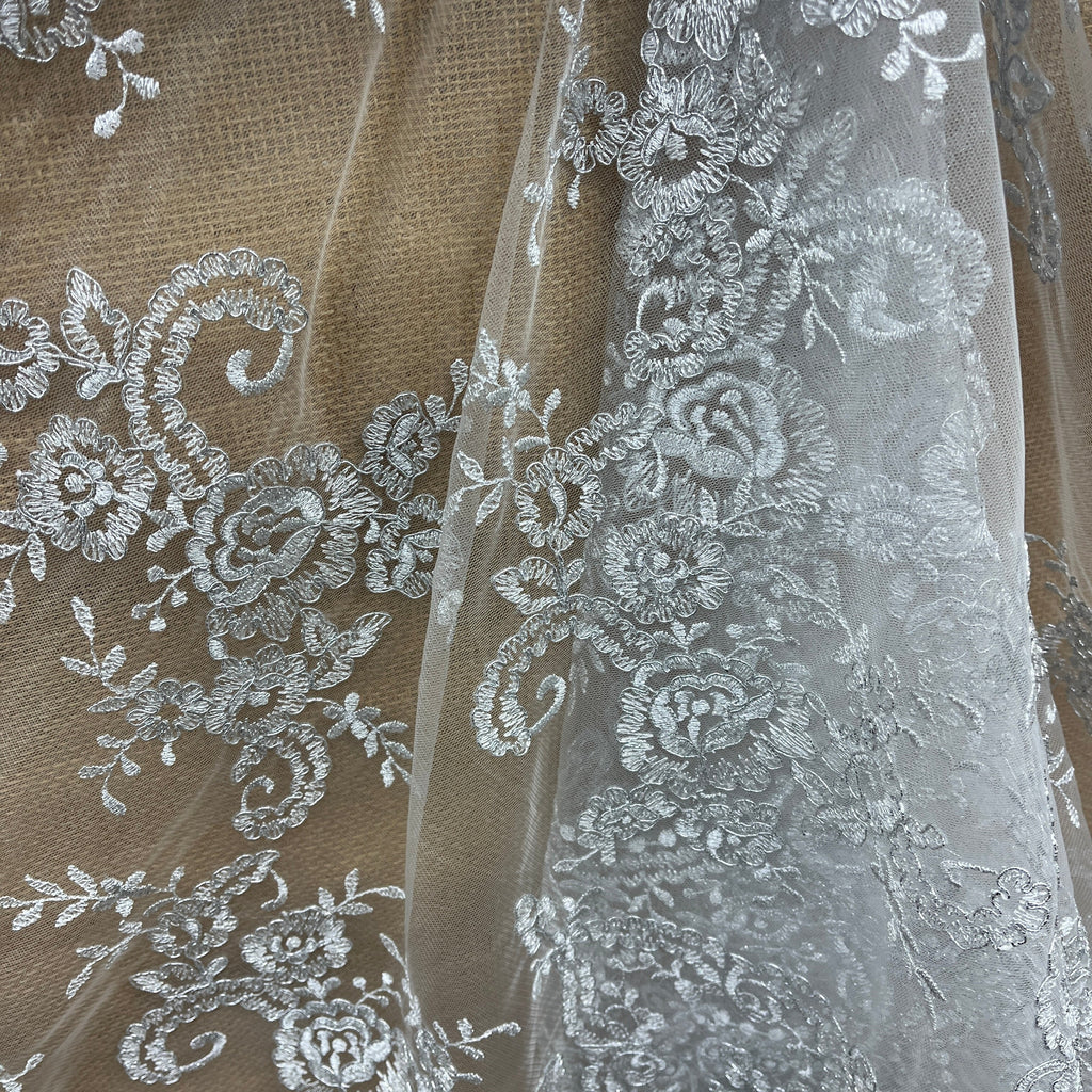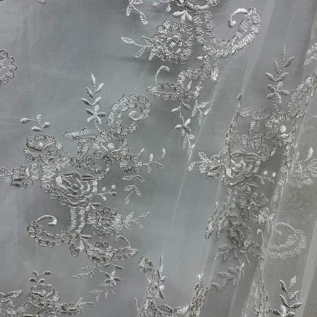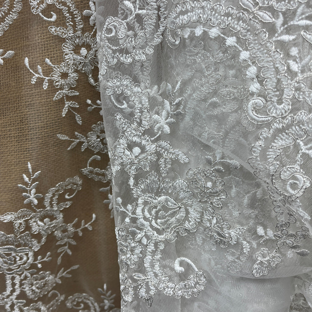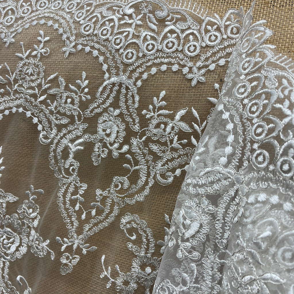 Corded Bridal Lace Fabric Embroidered on 100% Polyester Net Mesh | Lace USA -96806W