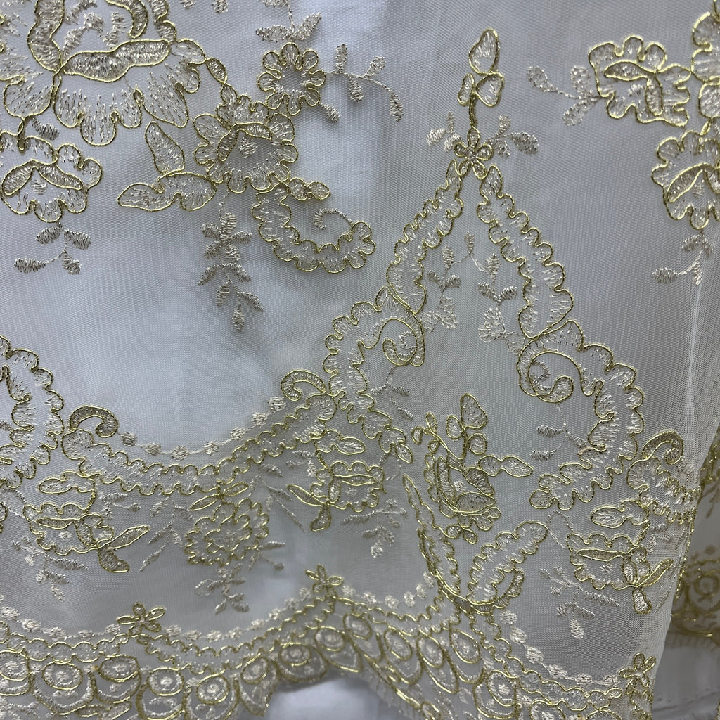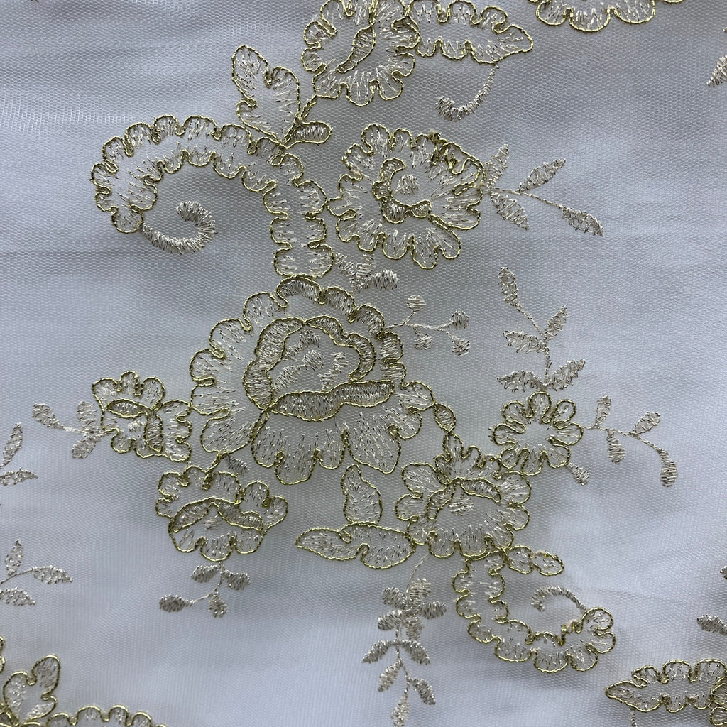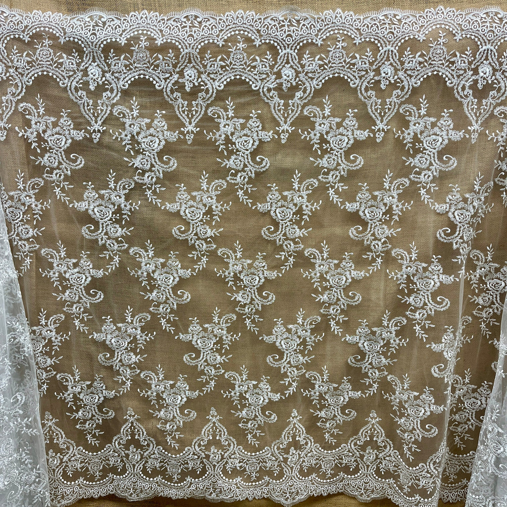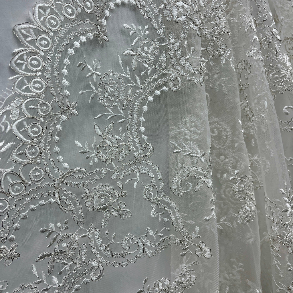 Corded Bridal Lace Fabric Embroidered on 100% Polyester Net Mesh | Lace USA -96806W