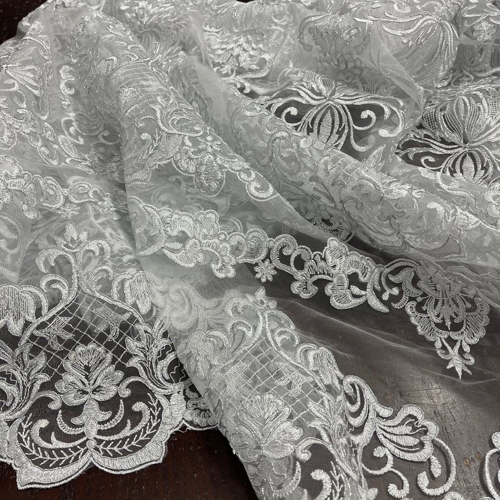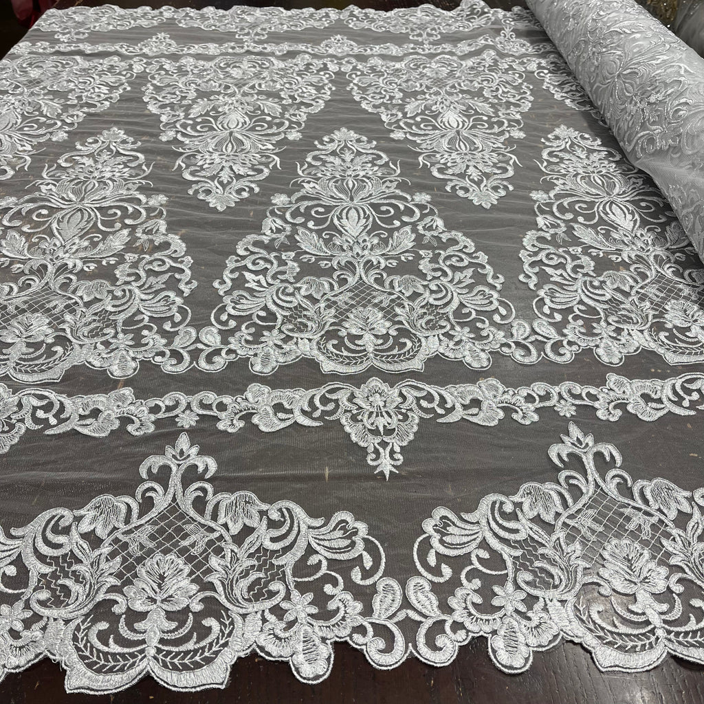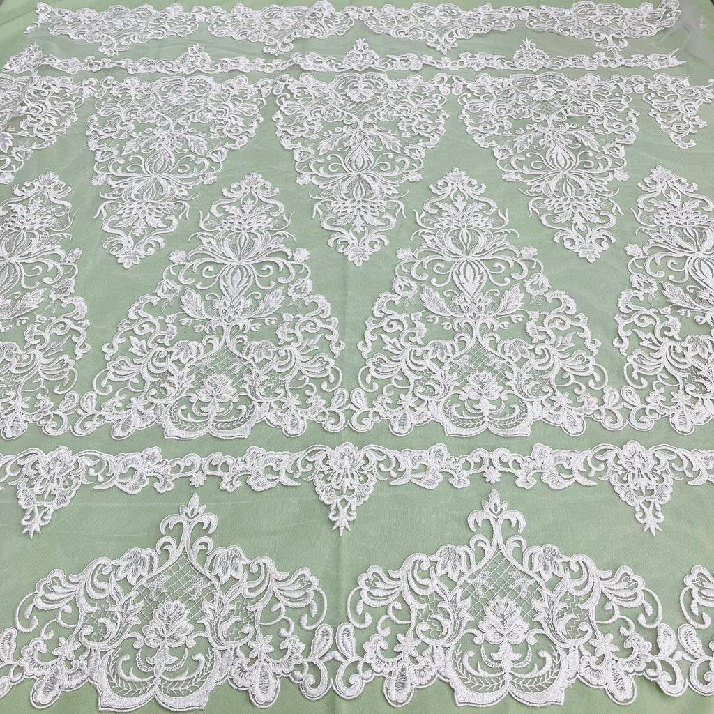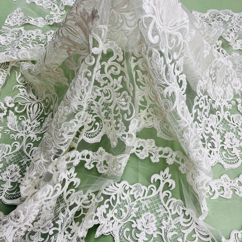 Corded Bridal Lace Fabric Embroidered on 100% Polyester Net Mesh | Lace USA - 97070W