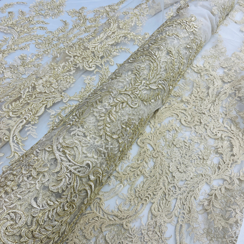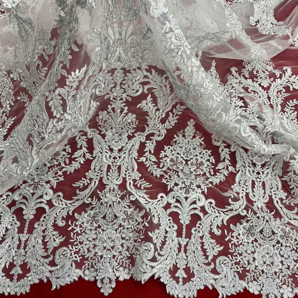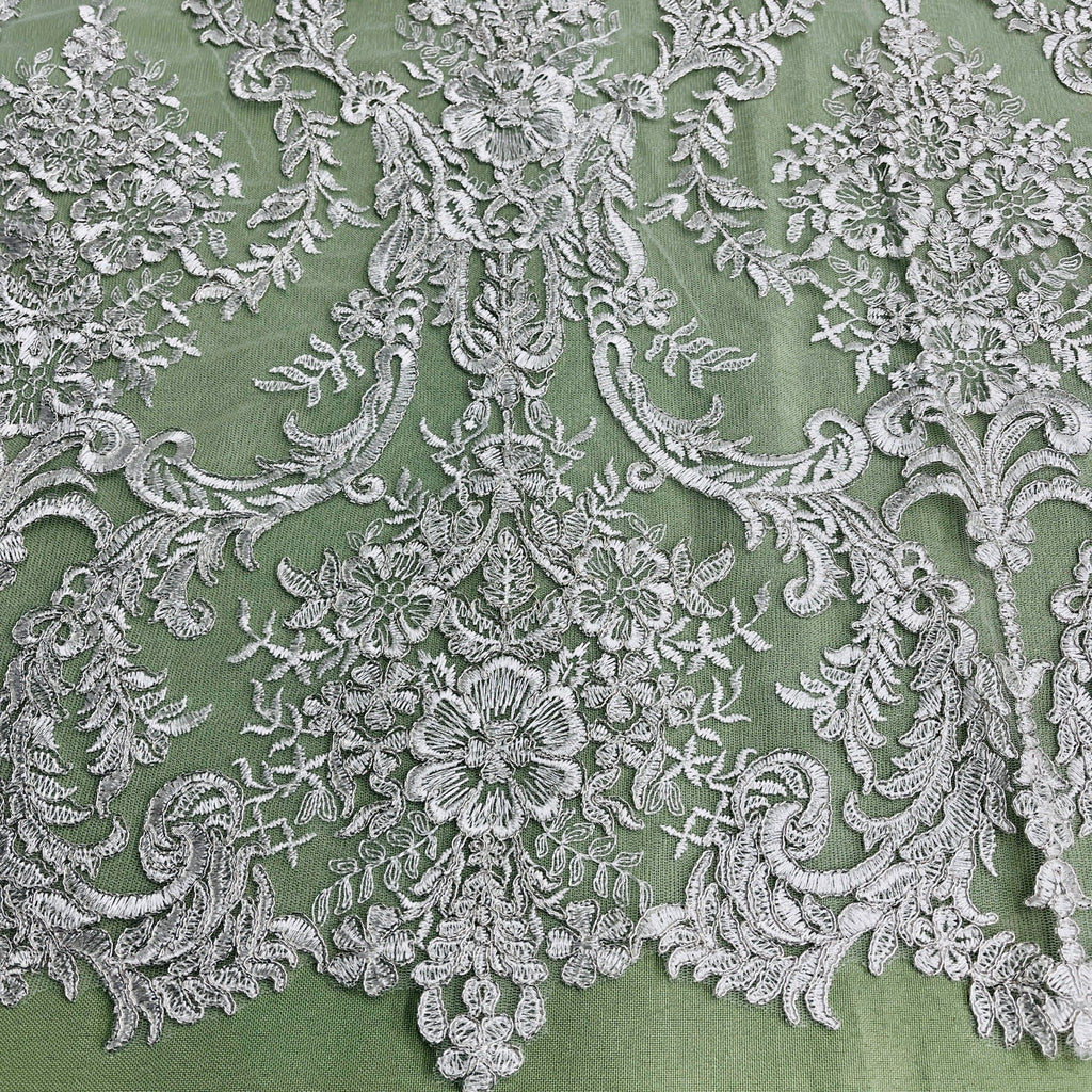 Corded Bridal Lace Fabric Embroidered on 100% Polyester Net Mesh | Lace USA - 97136W
