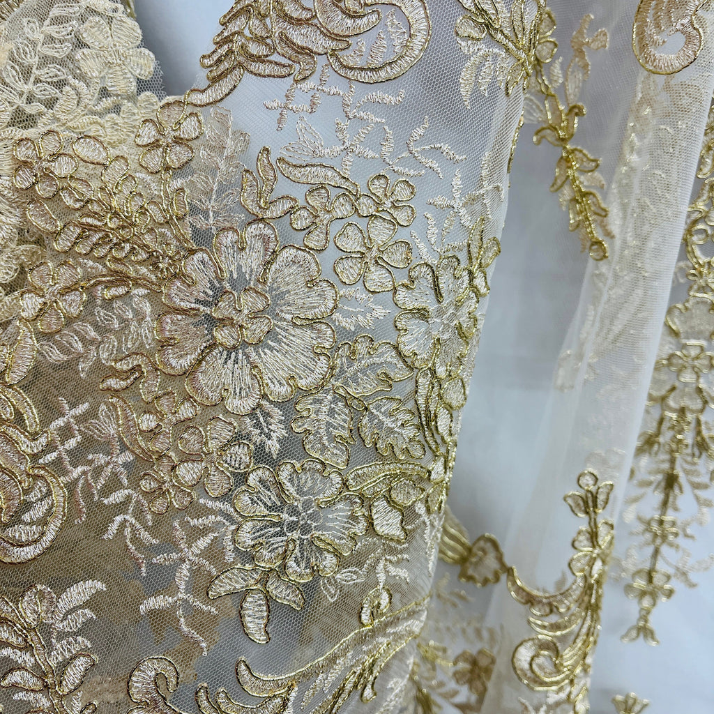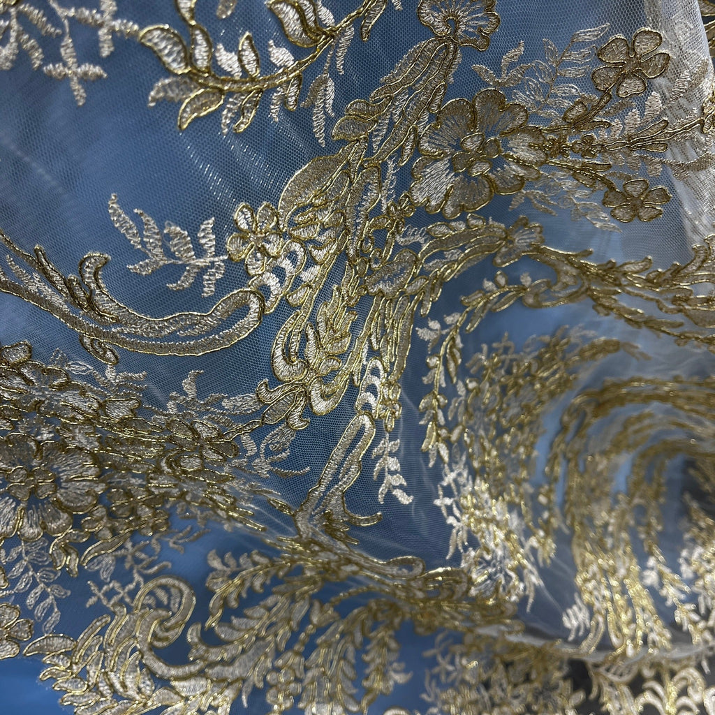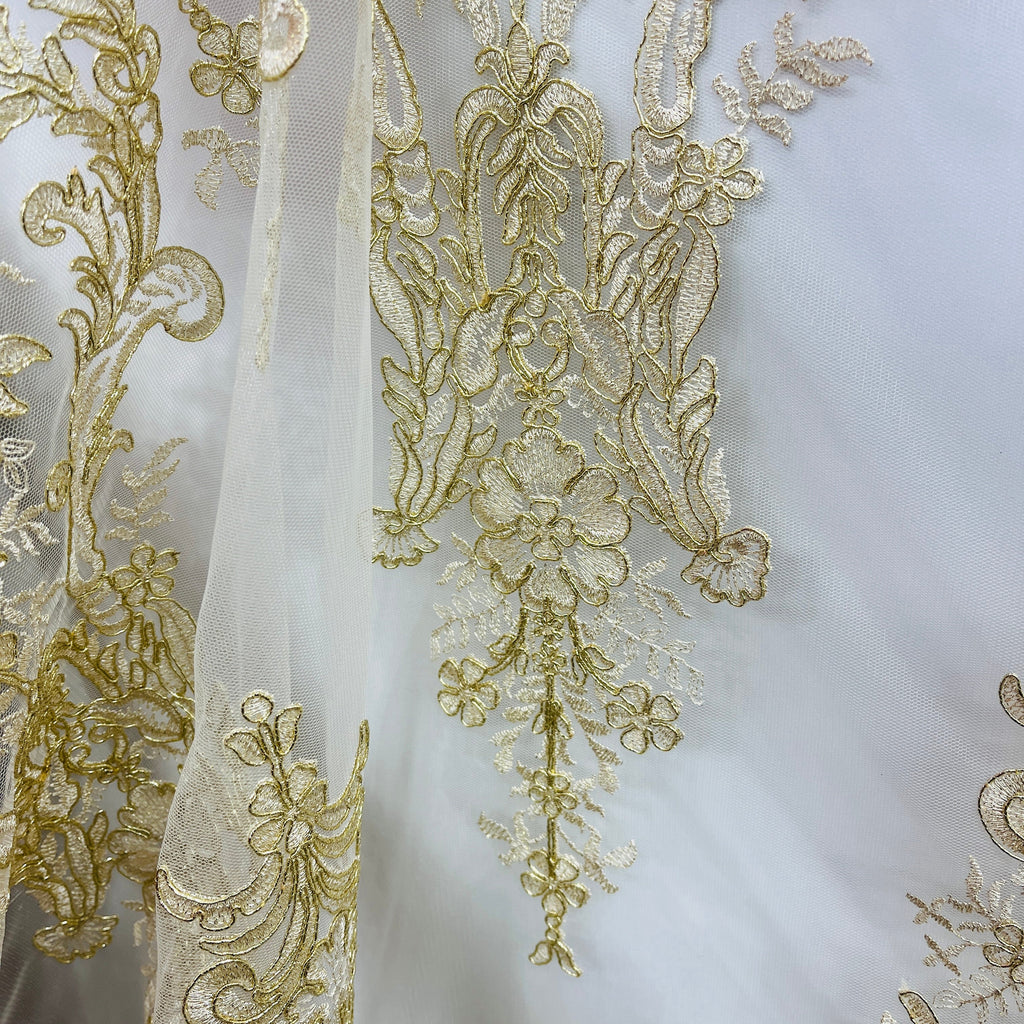 Corded Bridal Lace Fabric Embroidered on 100% Polyester Net Mesh | Lace USA - 97136W