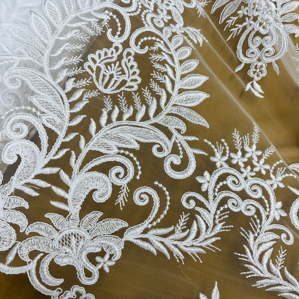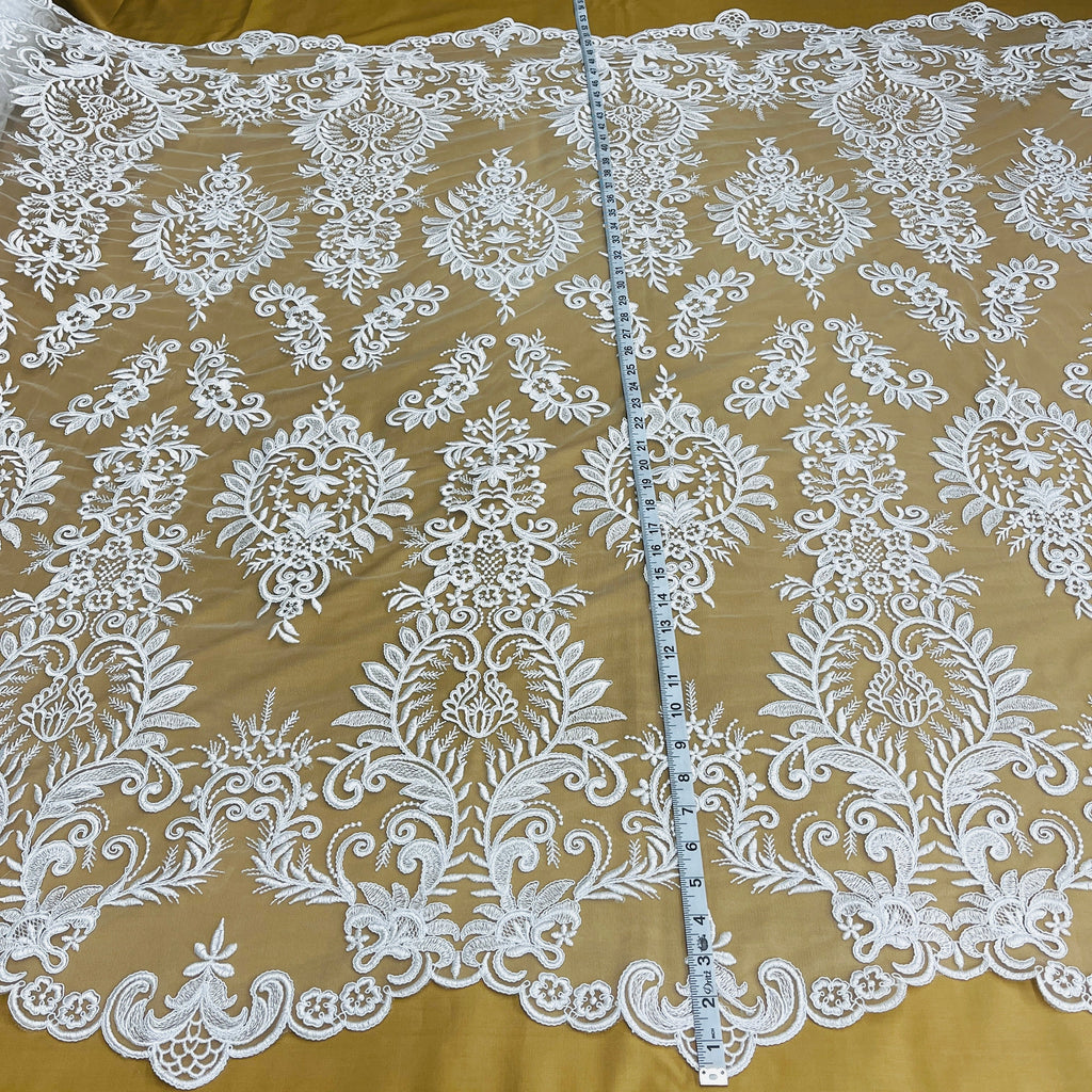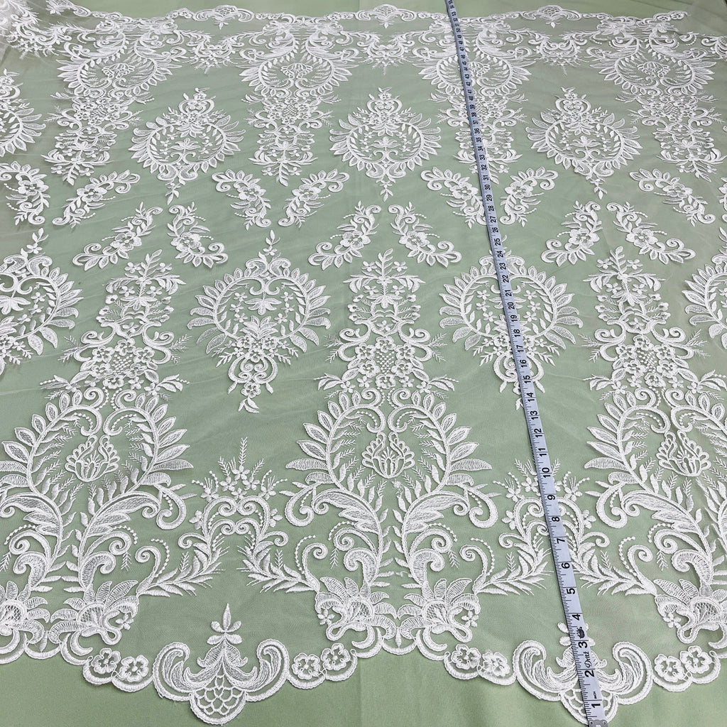 Corded Bridal Lace Fabric Embroidered on 100% Polyester Net Mesh | Lace USA - 97160W