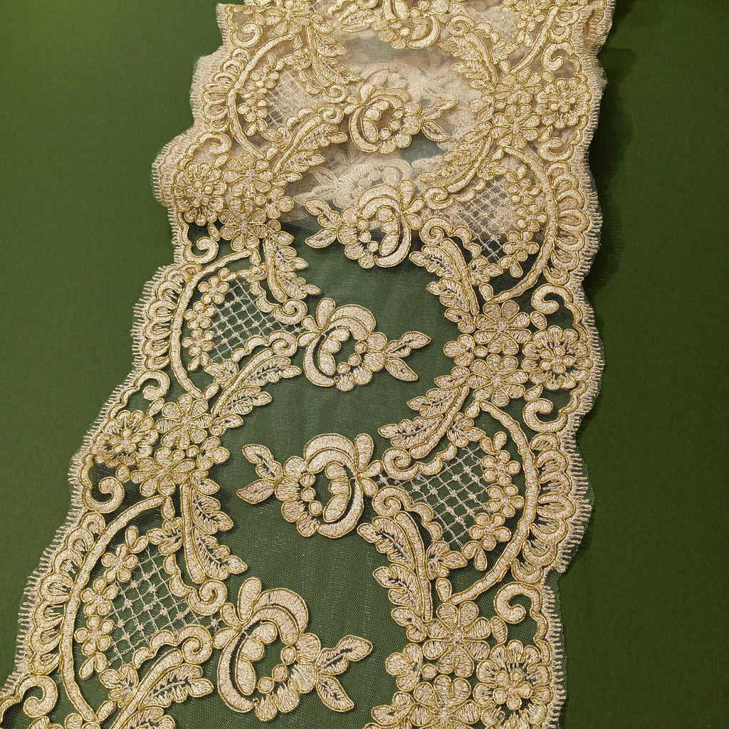 Introducing Lace USA's Corded Double Sided Lace Trimming Embroidered on 100% Polyester Net Mesh! This exquisite product is perfect for adding a touch of couture to any special occasion dress - from wedding dresses to evening gowns, dance costumes to quinceanera dresses. Handcrafted with superior quality and attention to detail, this lace trim is sure to make a statement. Featuring 4 gorgeous colors, this decadent corded lace trim is the perfect way to make your dress stand out. This lace trim is approximately 10" wide, and is made with a double sided embroidery on 100% polyester net mesh. It is an ideal choice for adding a touch of elegance and glamour to any special occasion. Whether you're looking for a classic bridal lace trim, a decadent evening dress trim, or an intricate trim for a quinceanera or dance costume, you can't go wrong with this sophisticated and elegant corded couture lace trim. From an embroidered and corded trim for special occasion dresses to decorative corded trims and elegant lace trimmings, this product will give your project a beautiful and unique finish.