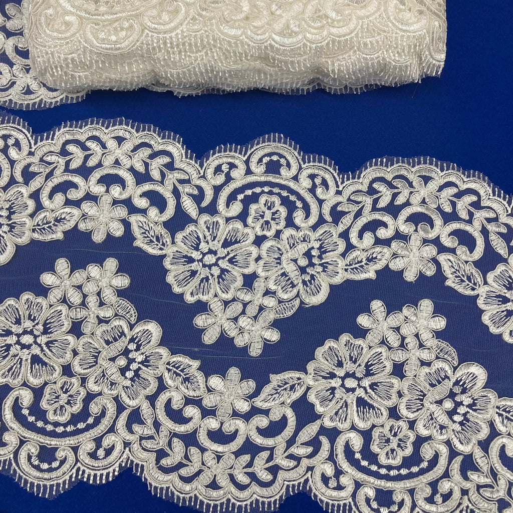 Corded Double Sided Lace Trimming Embroidered on 100% Polyester Net Mesh | Lace USA - 95365W/2