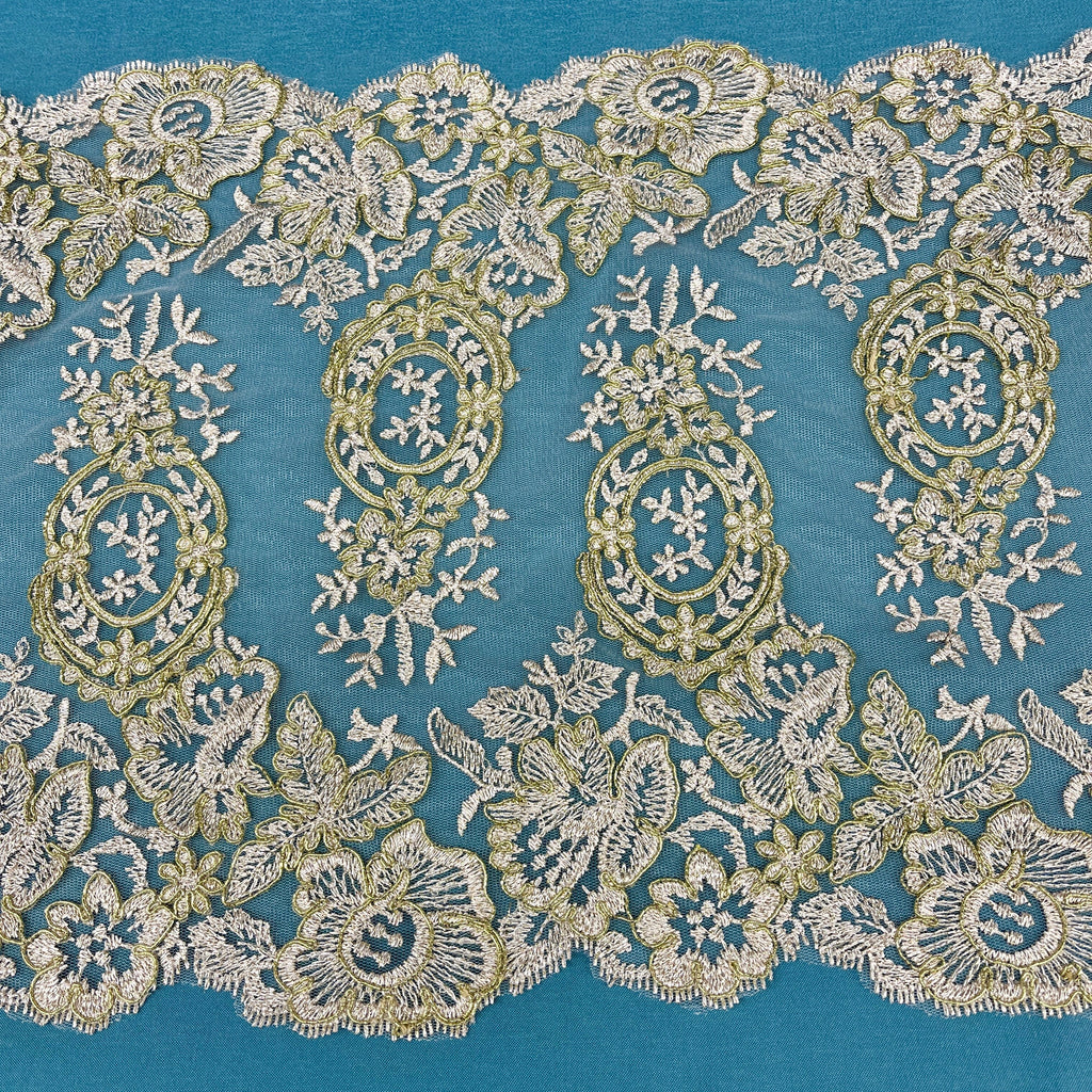 Corded Double Sided Lace Trimming Embroidered on 100% Polyester Net Mesh | Lace USA - 97039W/2