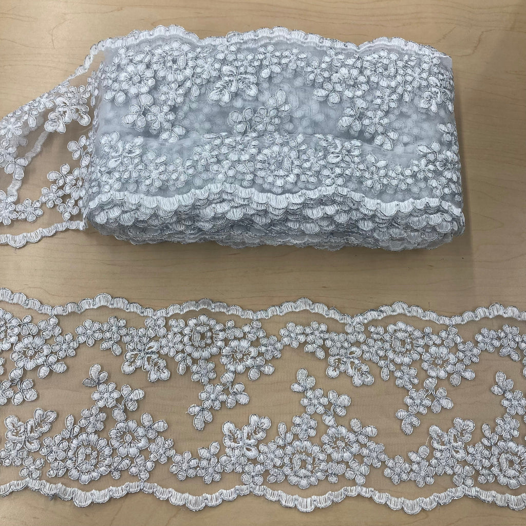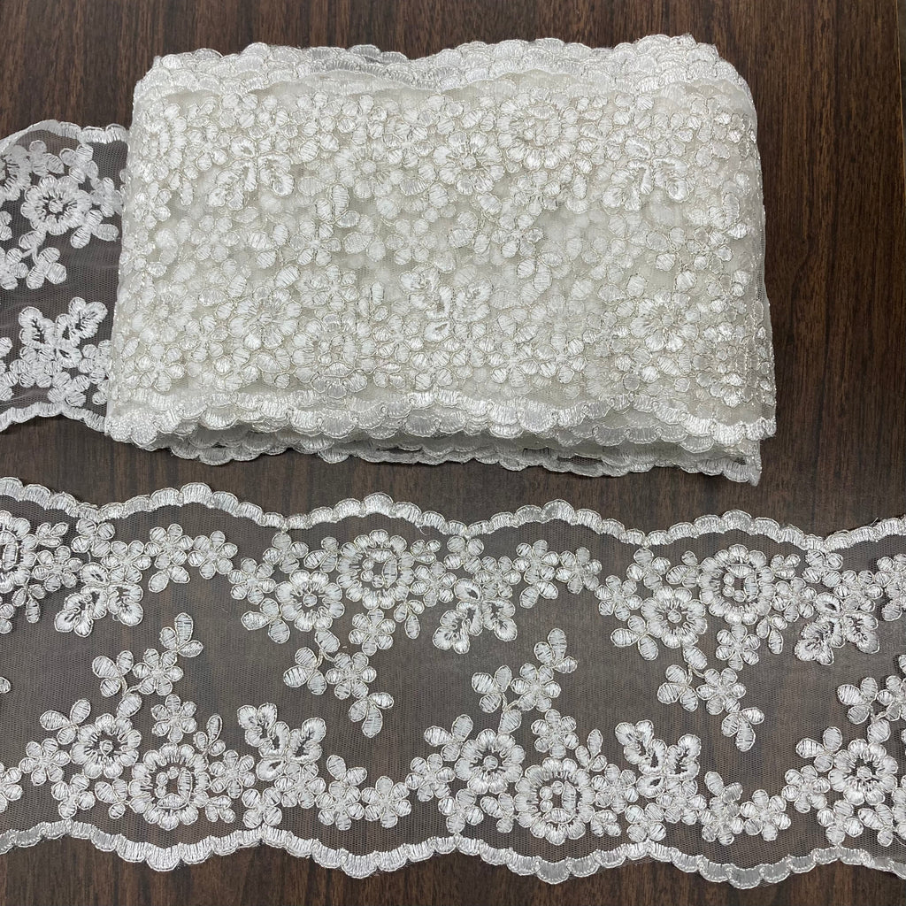 Corded Double Sided Lace Trimming Embroidered on 100% Polyester Net Mesh | Lace USA - 97121W/2